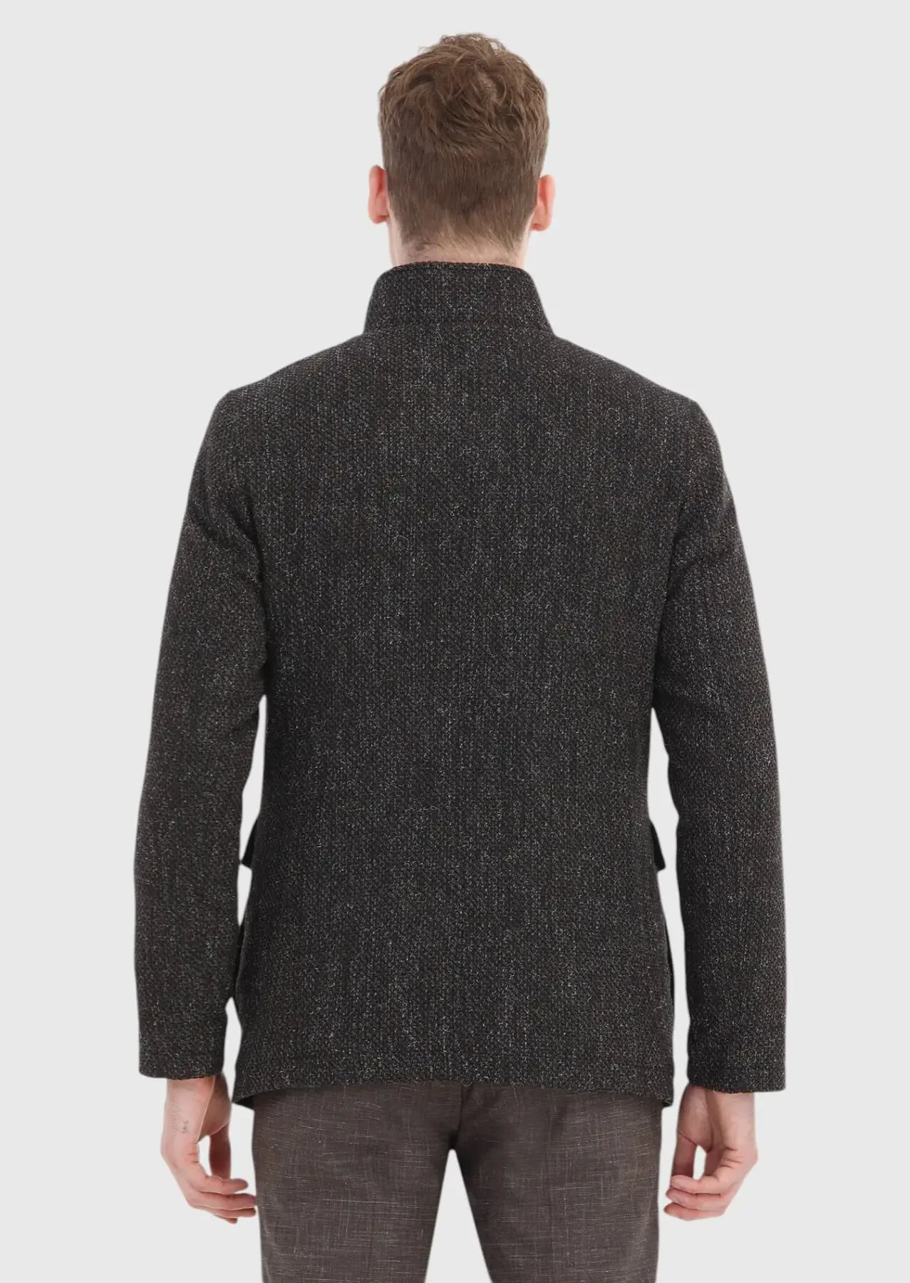 Kahverengi Regular Fit Dik Yaka Casual Dokuma Mont