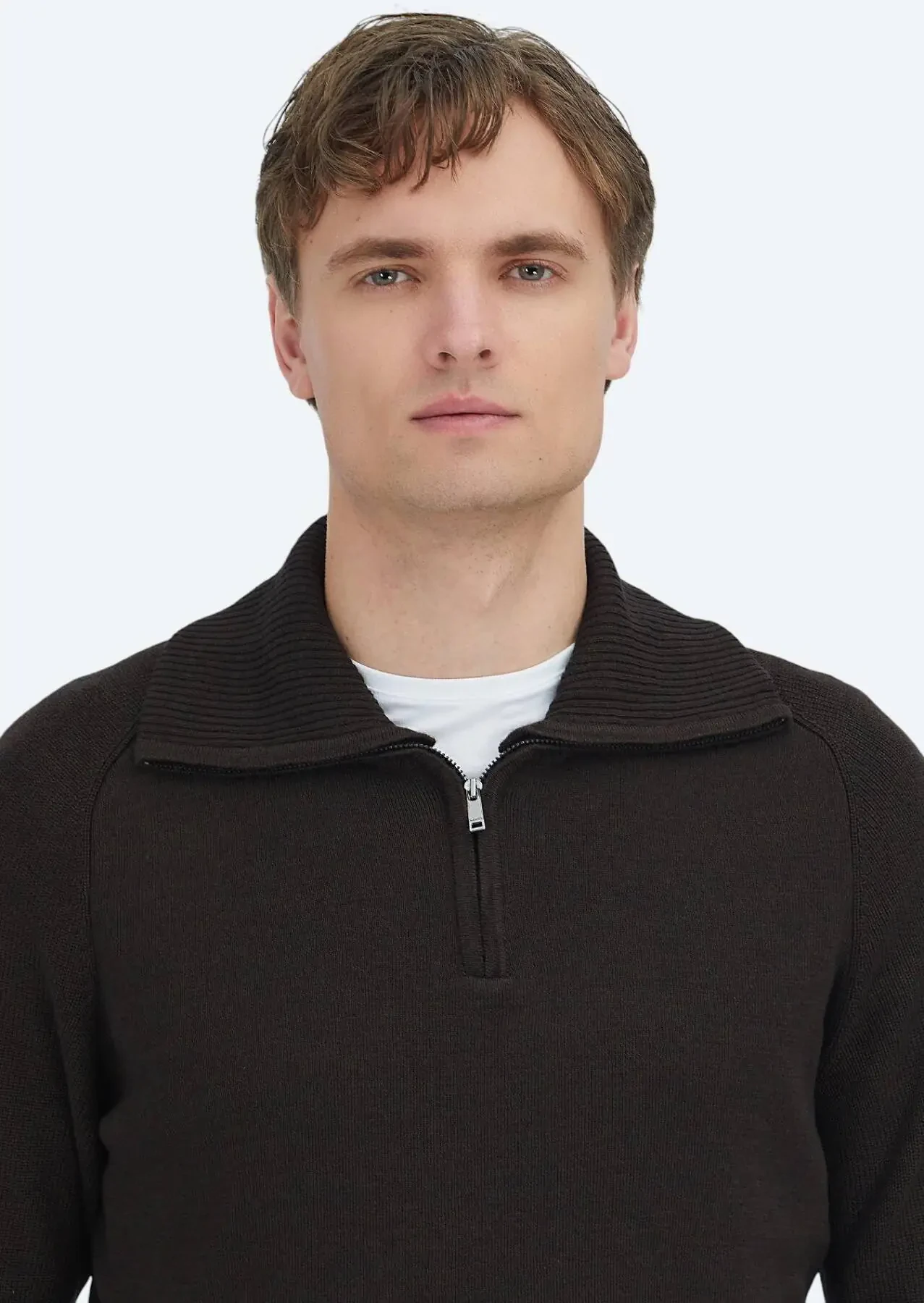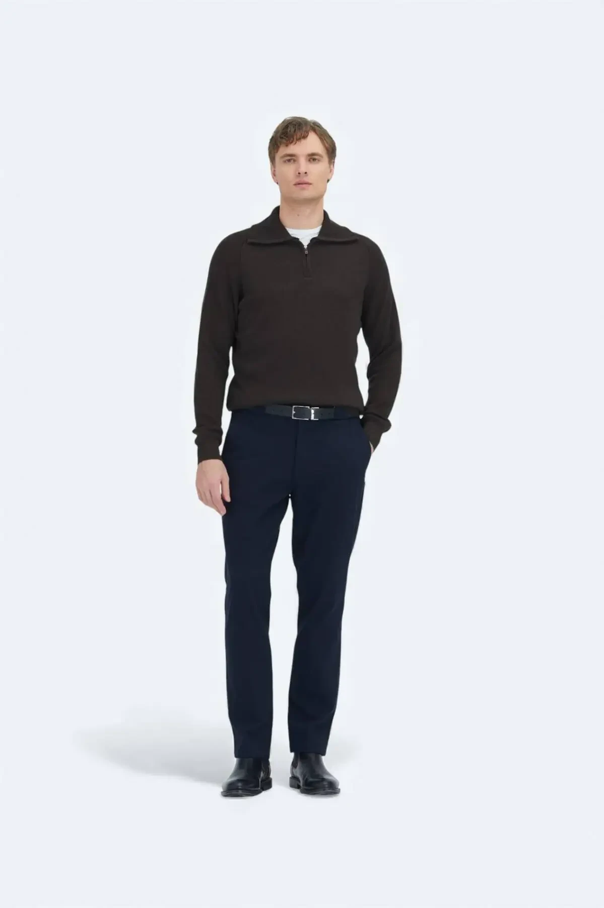 Kahverengi Yarım Balıkçı Yaka Düz Örgü Yün Karışımlı Triko Kazak