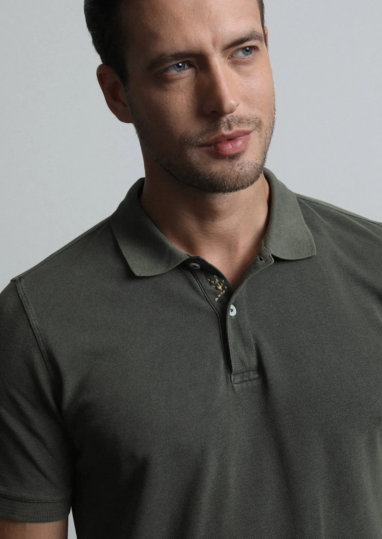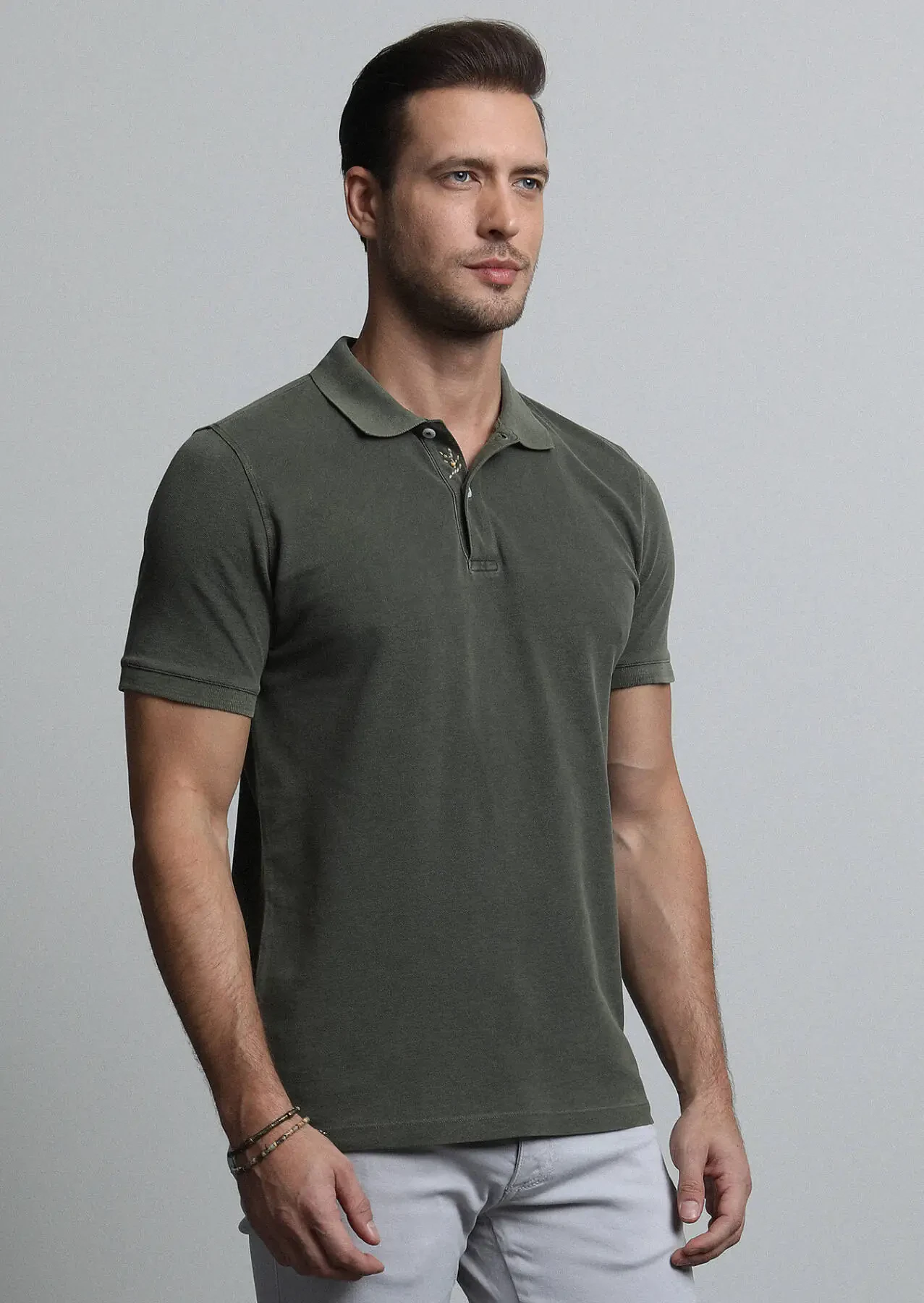 Khaki Jacquard Polo Neck 100% Cotton T-Shirt