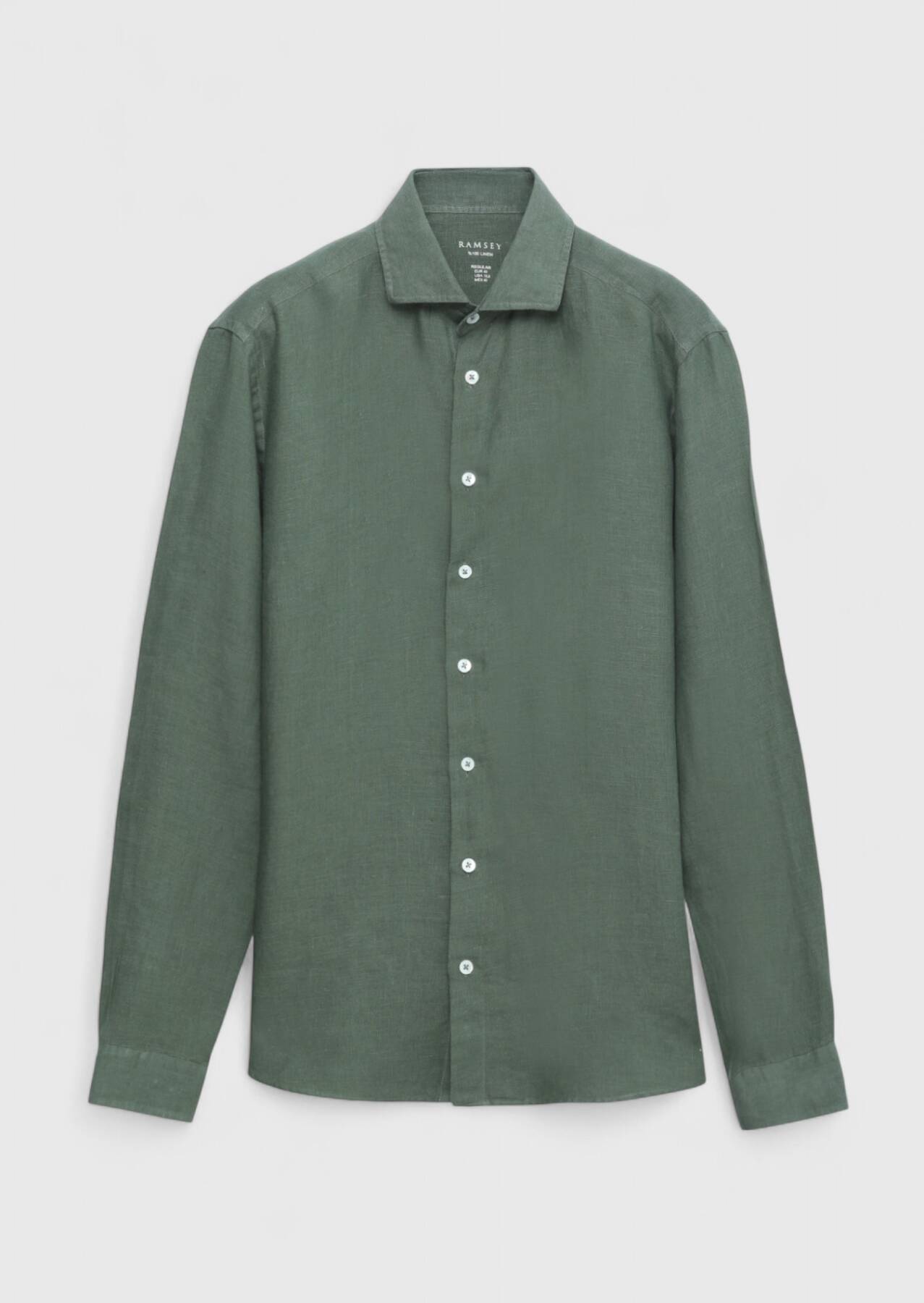 Khaki Plain Casual Fit Weaving Casual 100% Linen Shirt
