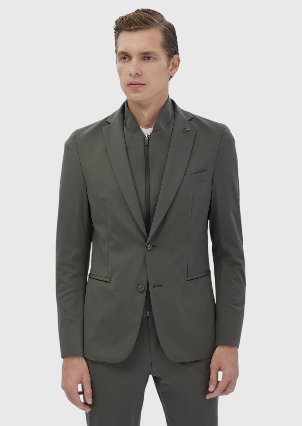 Model: Height: 186 cm, Chest: 94 cm, Waist: 73 cm, Size: 48