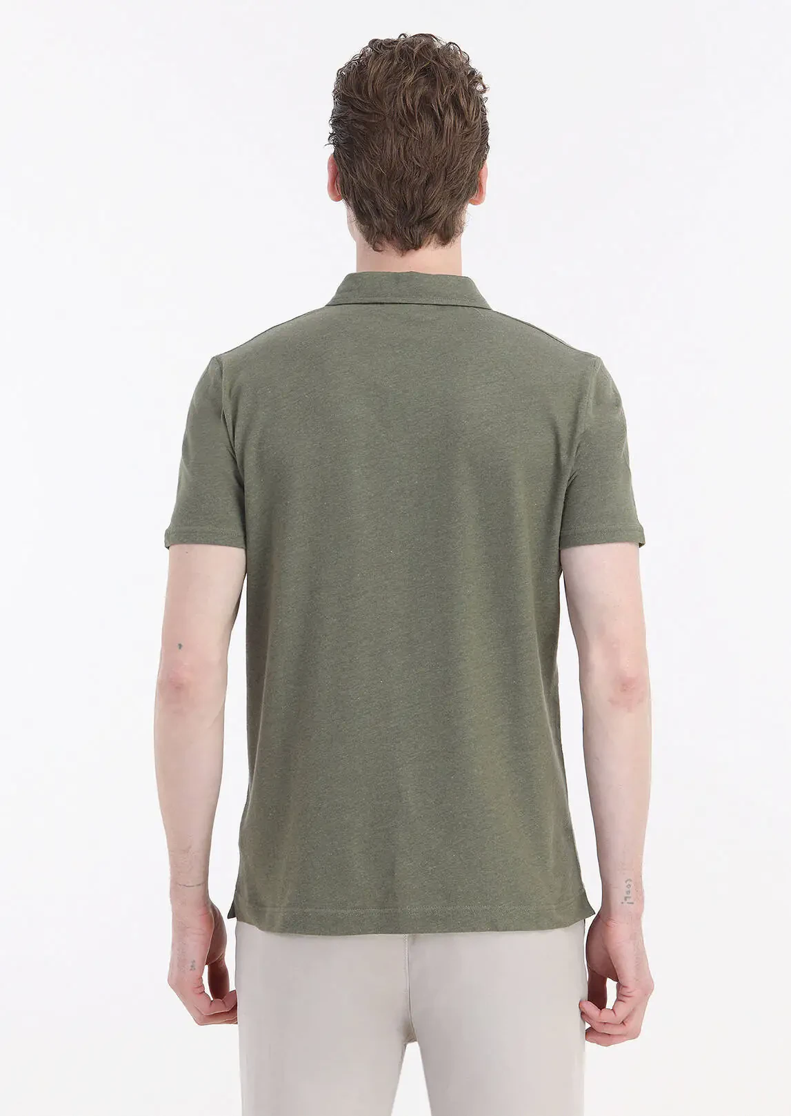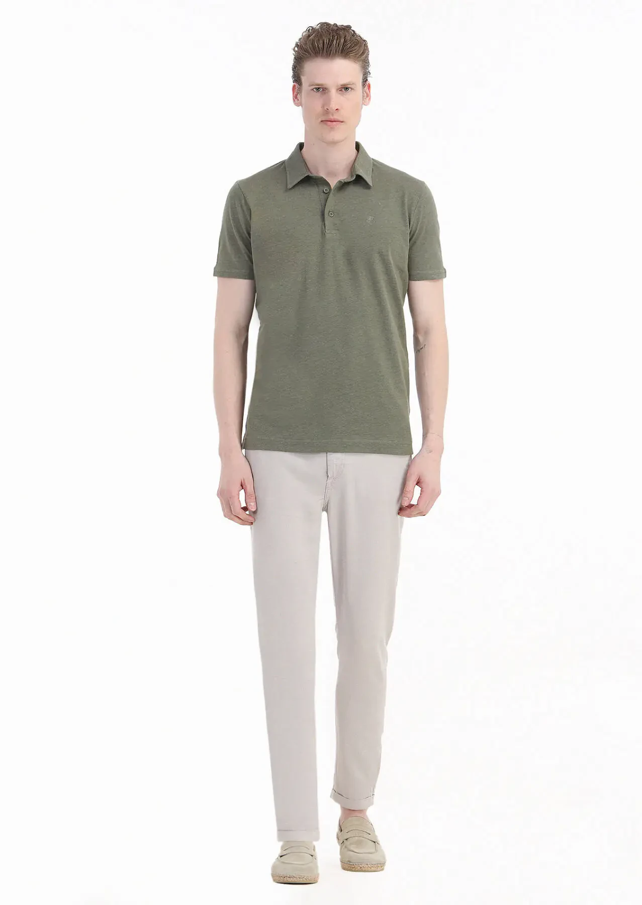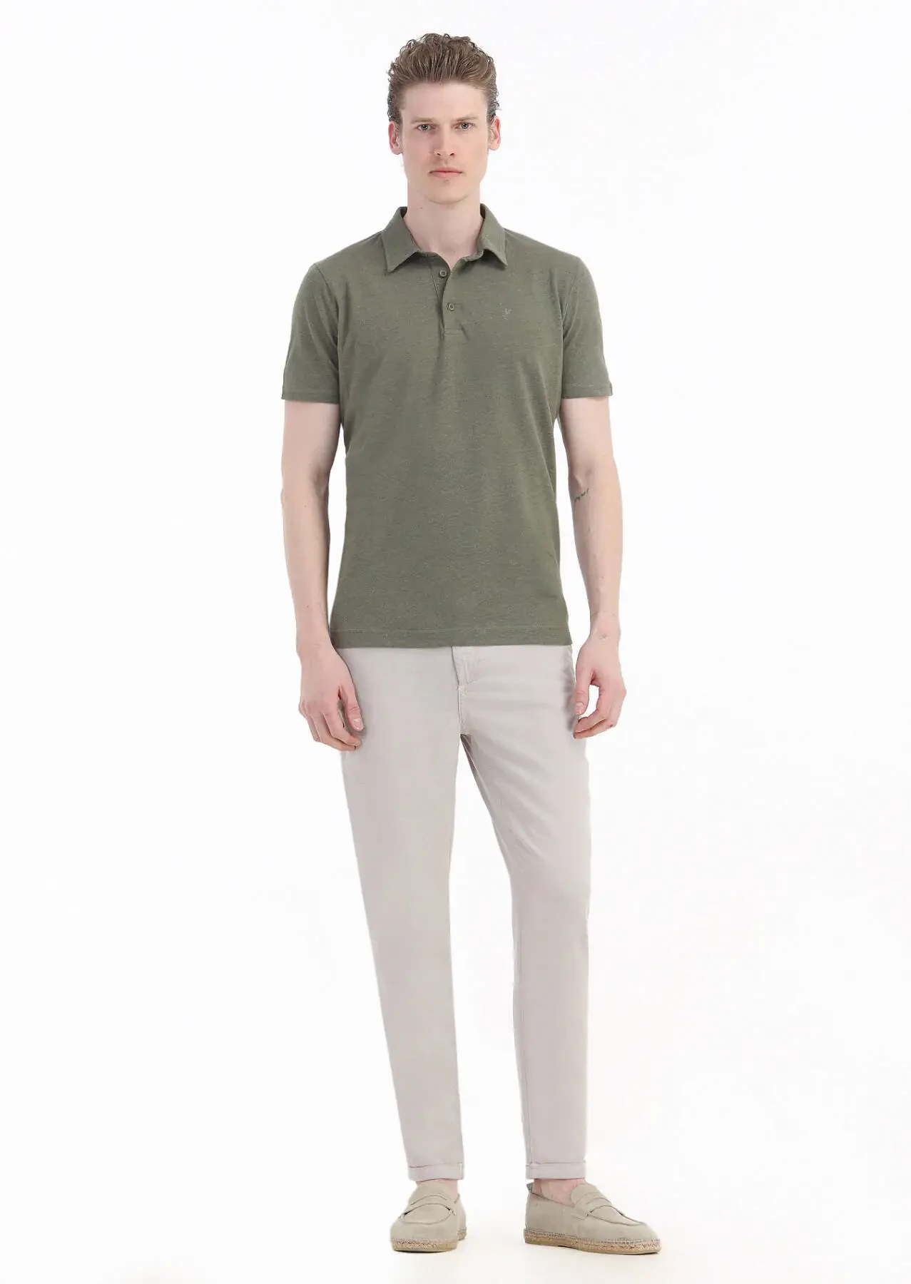 Khaki Plain Polo Neck Cotton Blended T-Shirt