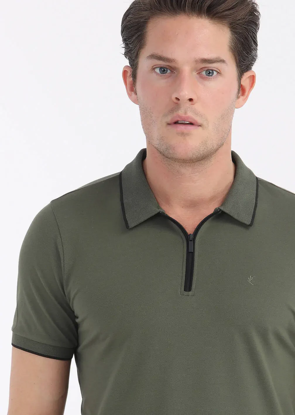 Khaki Plain Polo Neck Cotton Blended T-Shirt