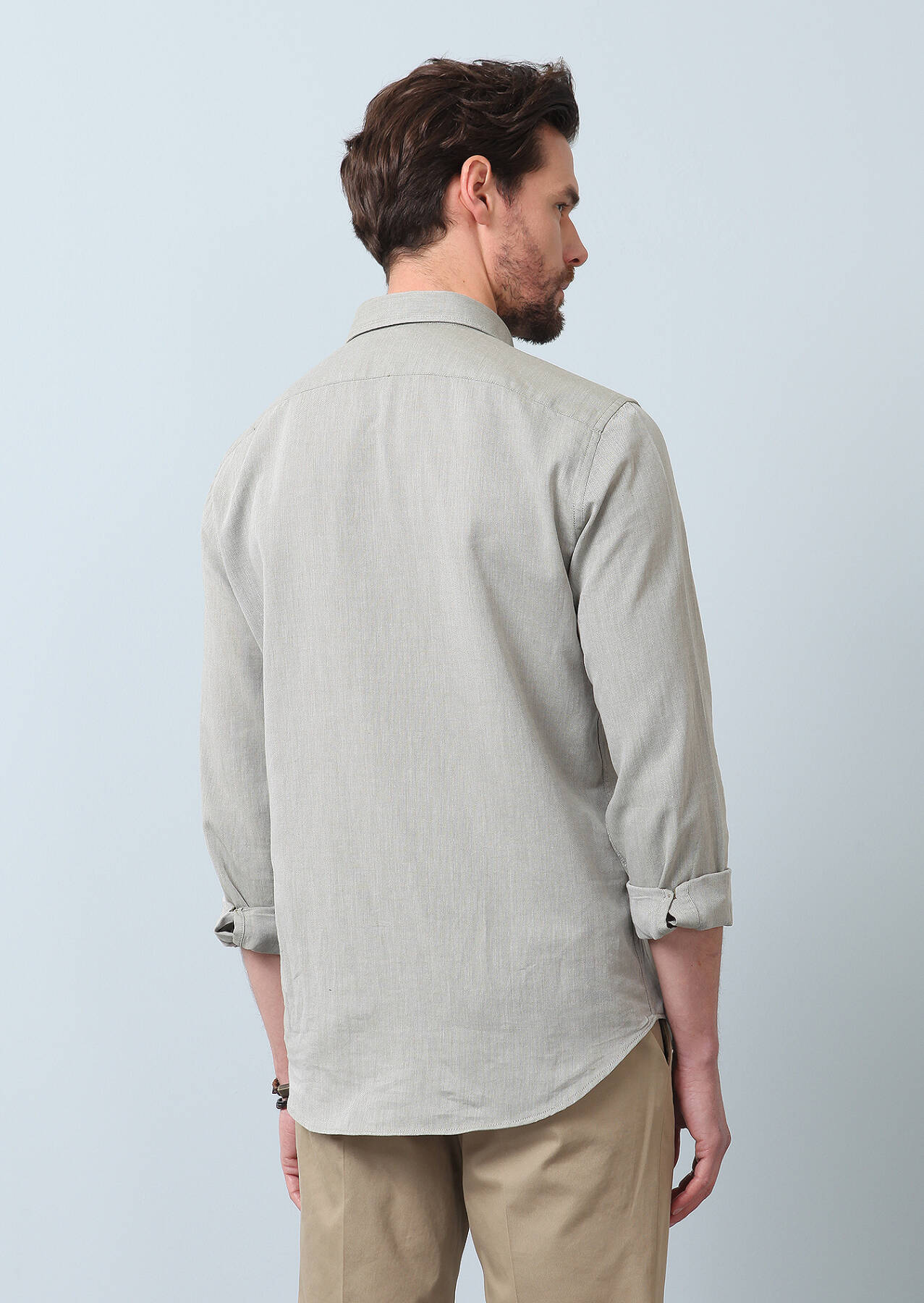 Khaki Plain Regular Fit Weaving Casual 100% Cotton Shirt