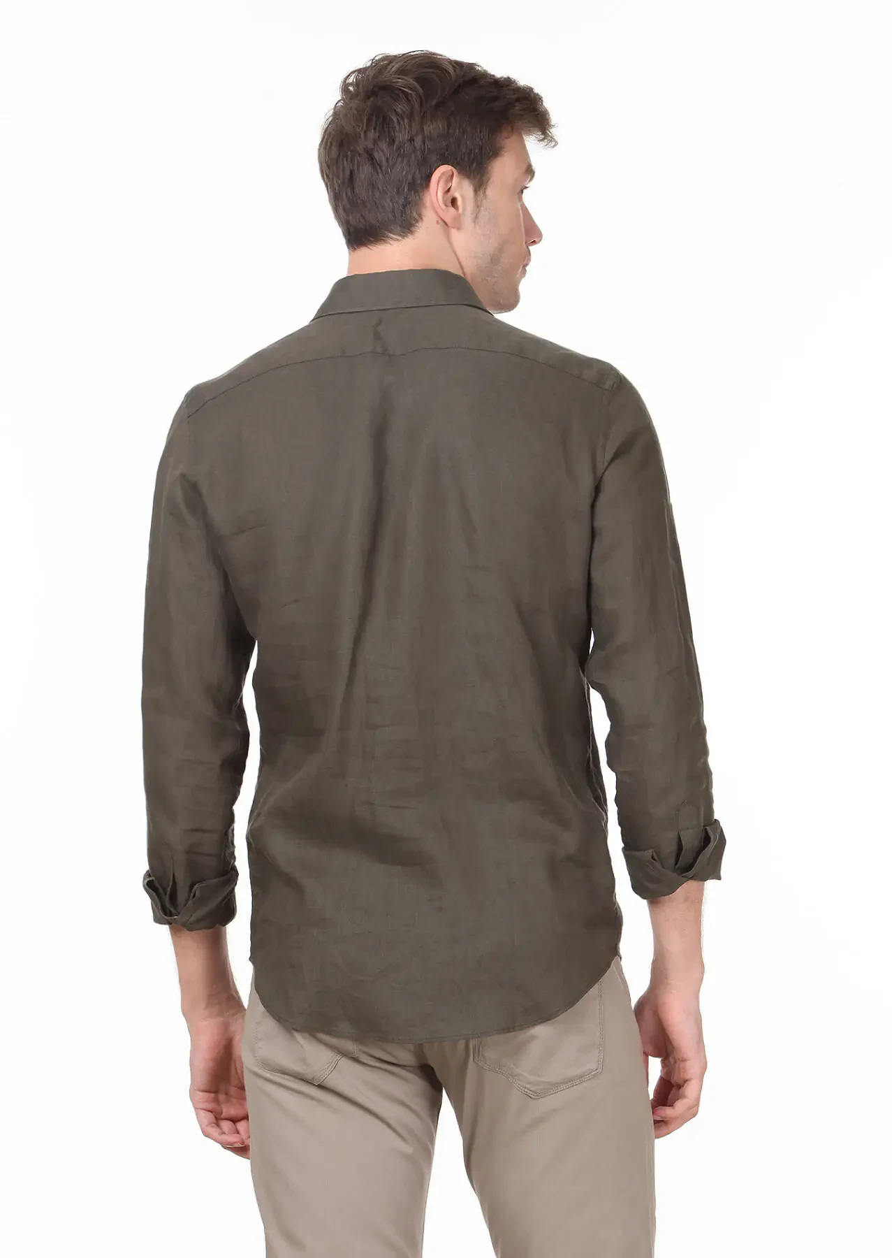 Khaki Plain Regular Fit Weaving Casual 100% Linen Shirt