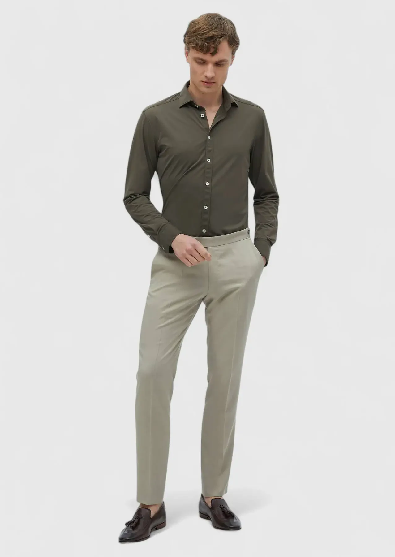 Khaki Plain Regular Fit Weaving Classical Shirt
