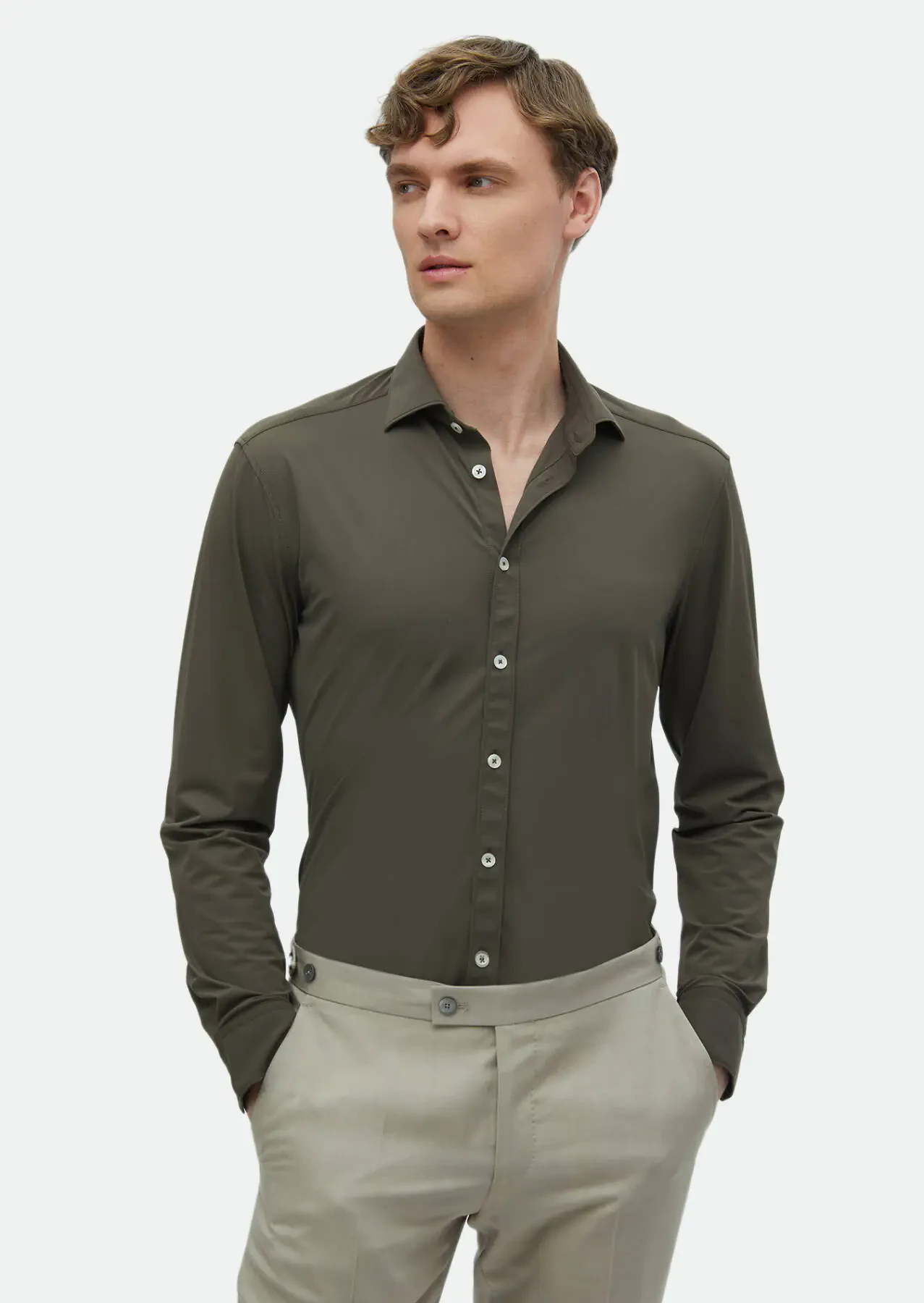 Khaki Plain Regular Fit Weaving Classical Shirt