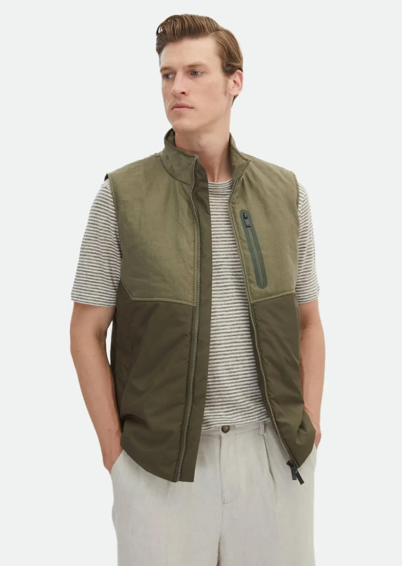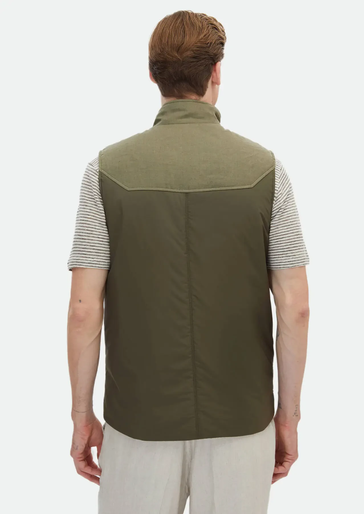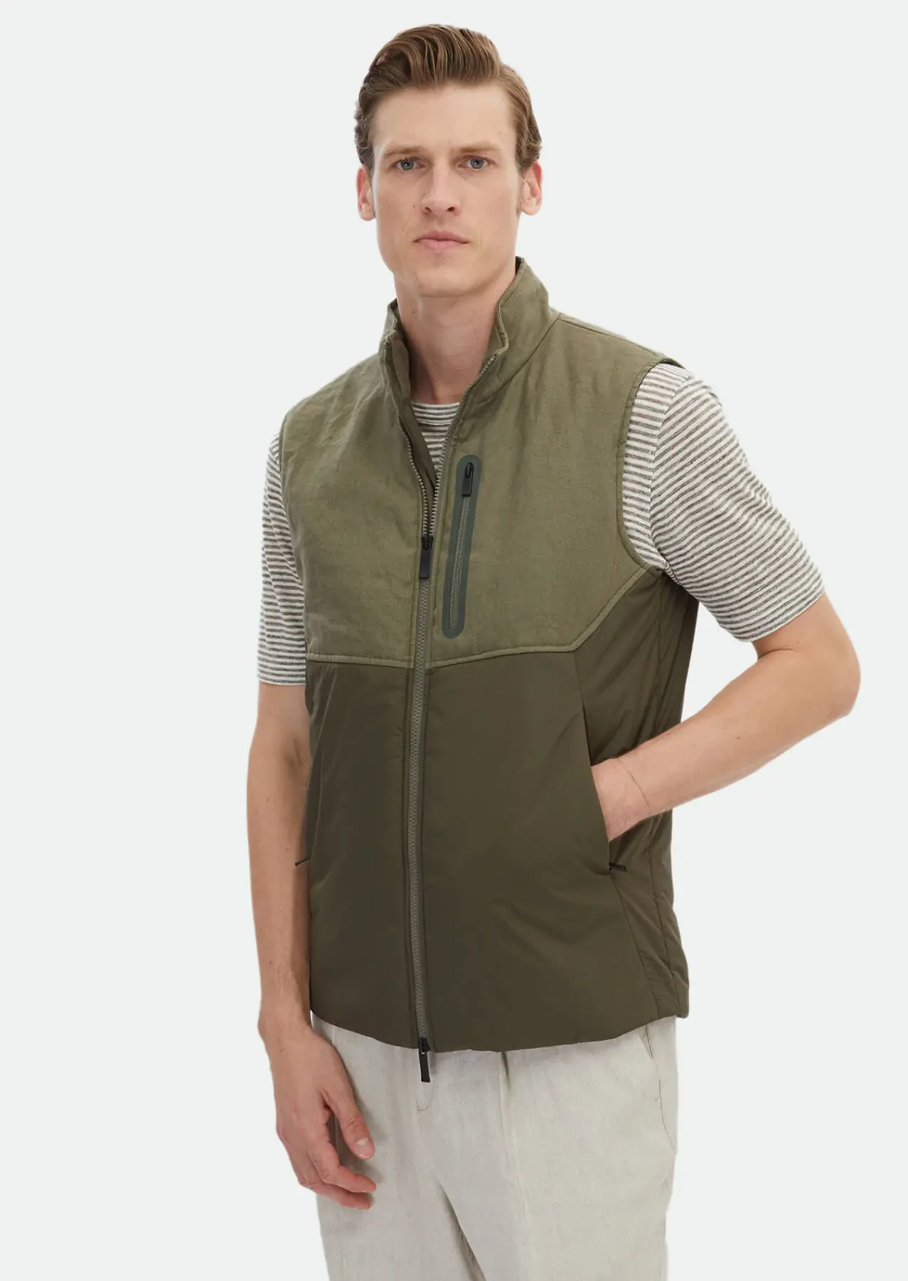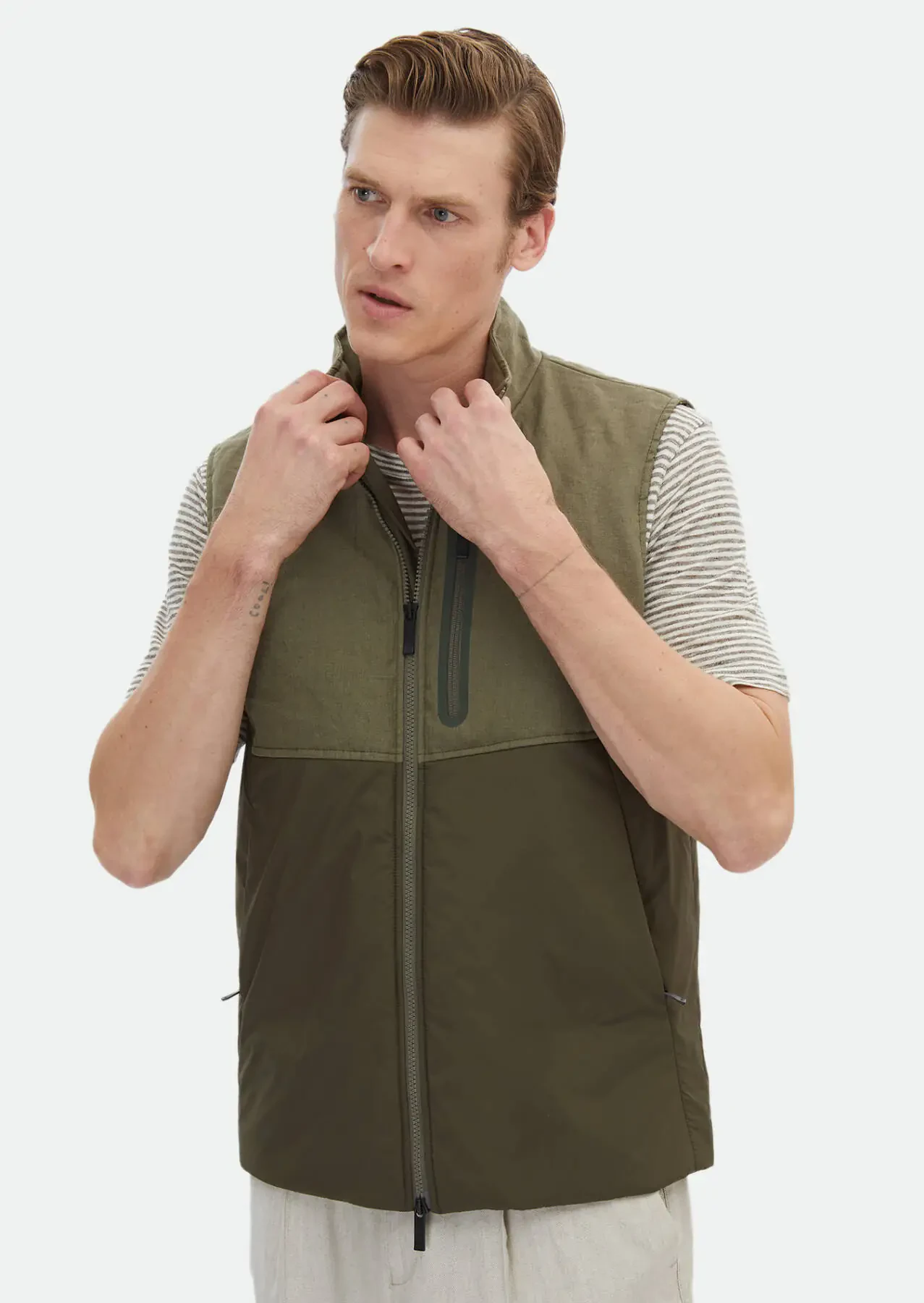 Khaki Regular Fit Turtleneck Casual Weaving Puffer Vest