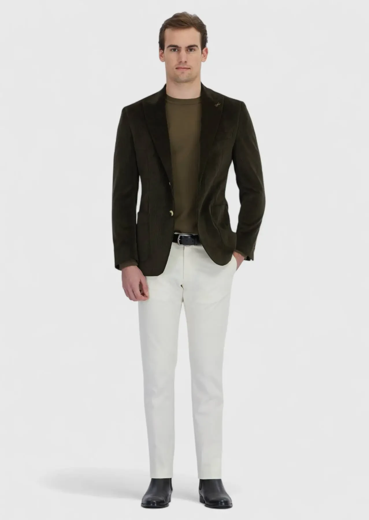 Model: Height: 187 cm, Chest: 98 cm, Waist: 78 cm, Hips: 96 cm, Size: 48