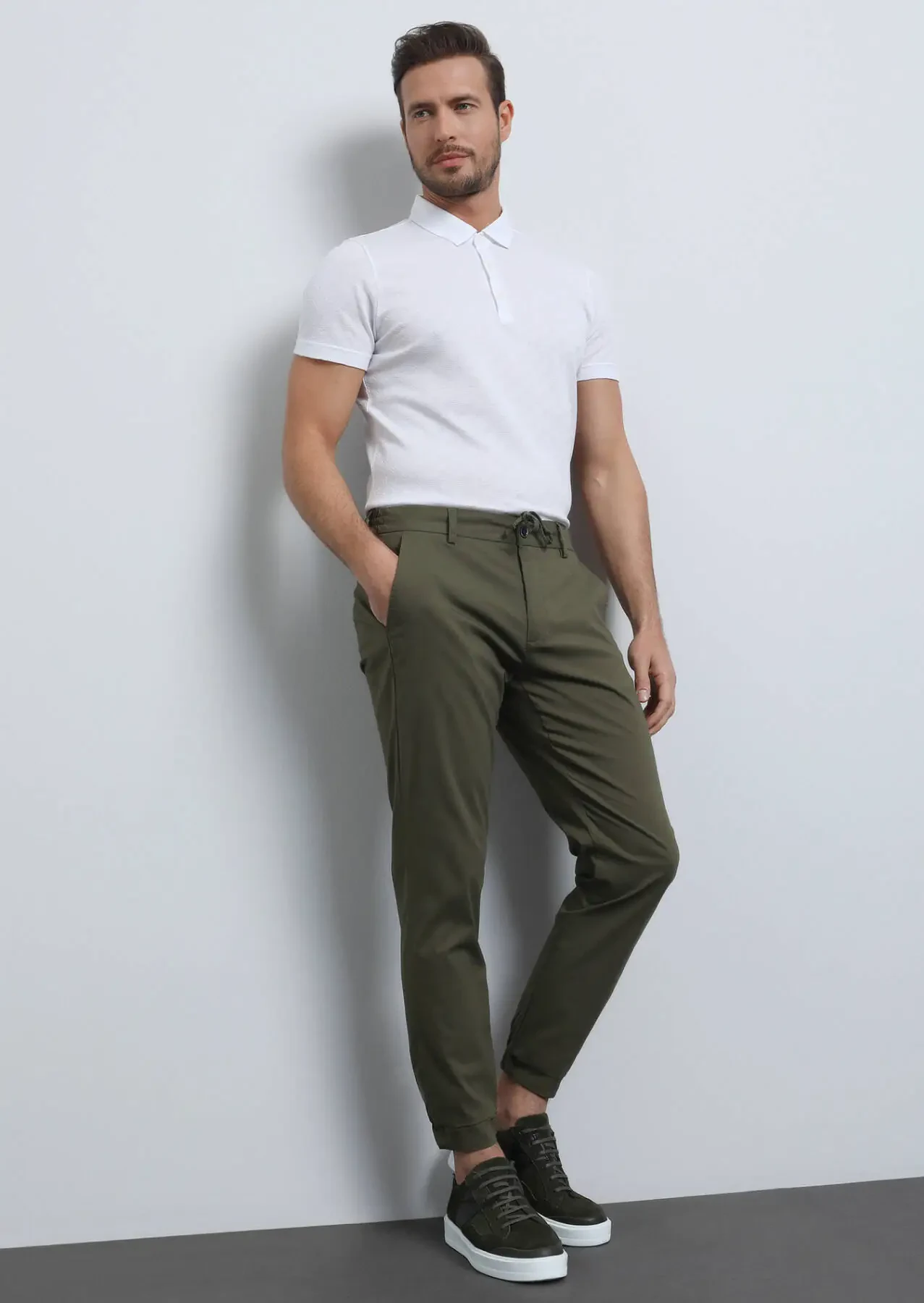 Khaki Weaving Jogging Fit Casual Cotton Blended Trousers
