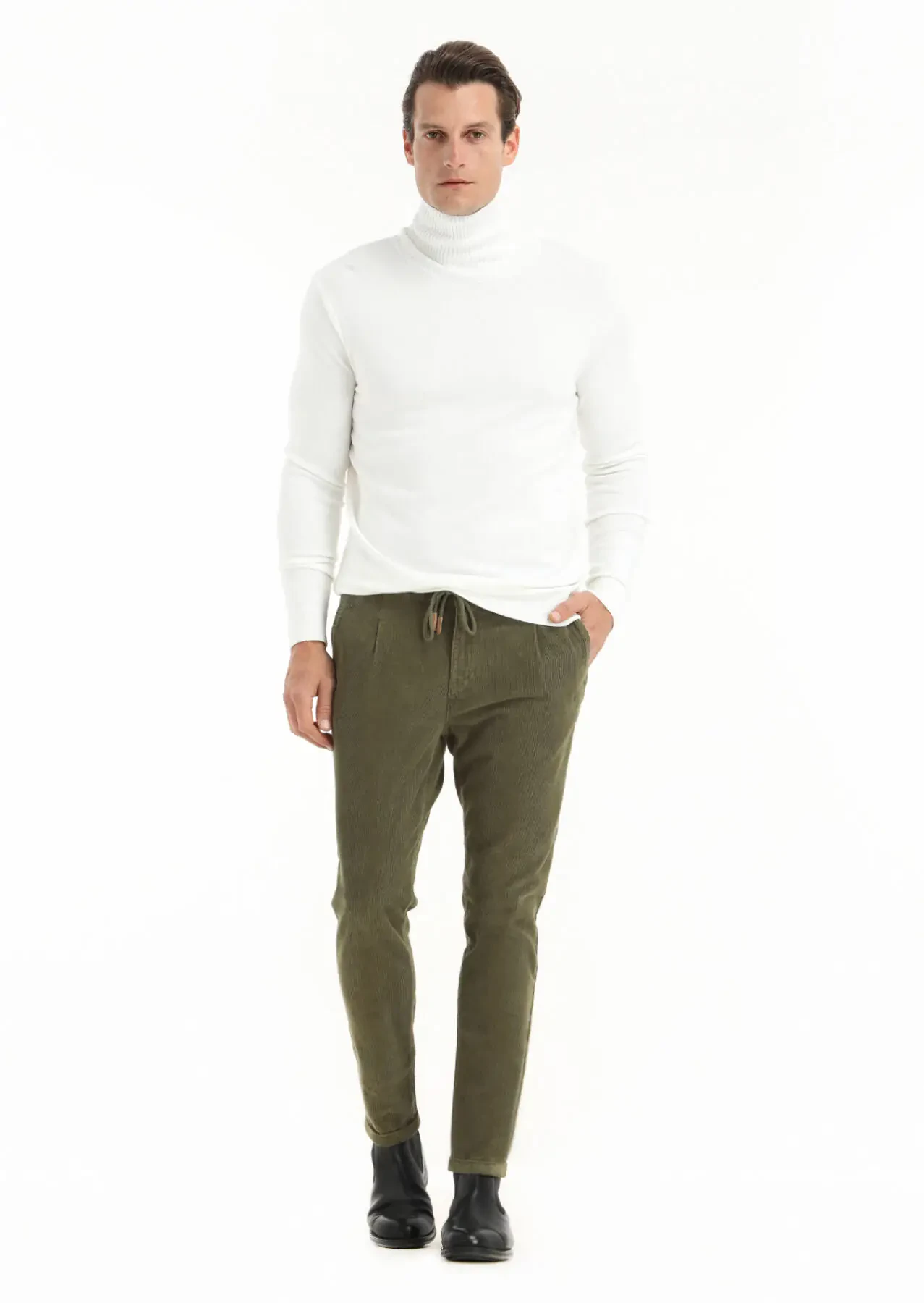 Khaki Weaving Jogging Fit Casual Cotton Blended Trousers