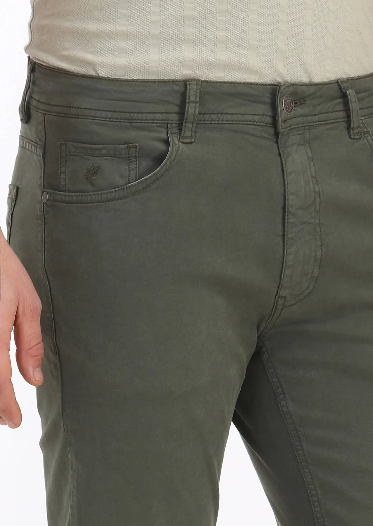 Khaki Weaving Slim Fit Casual Cotton Blended Trousers