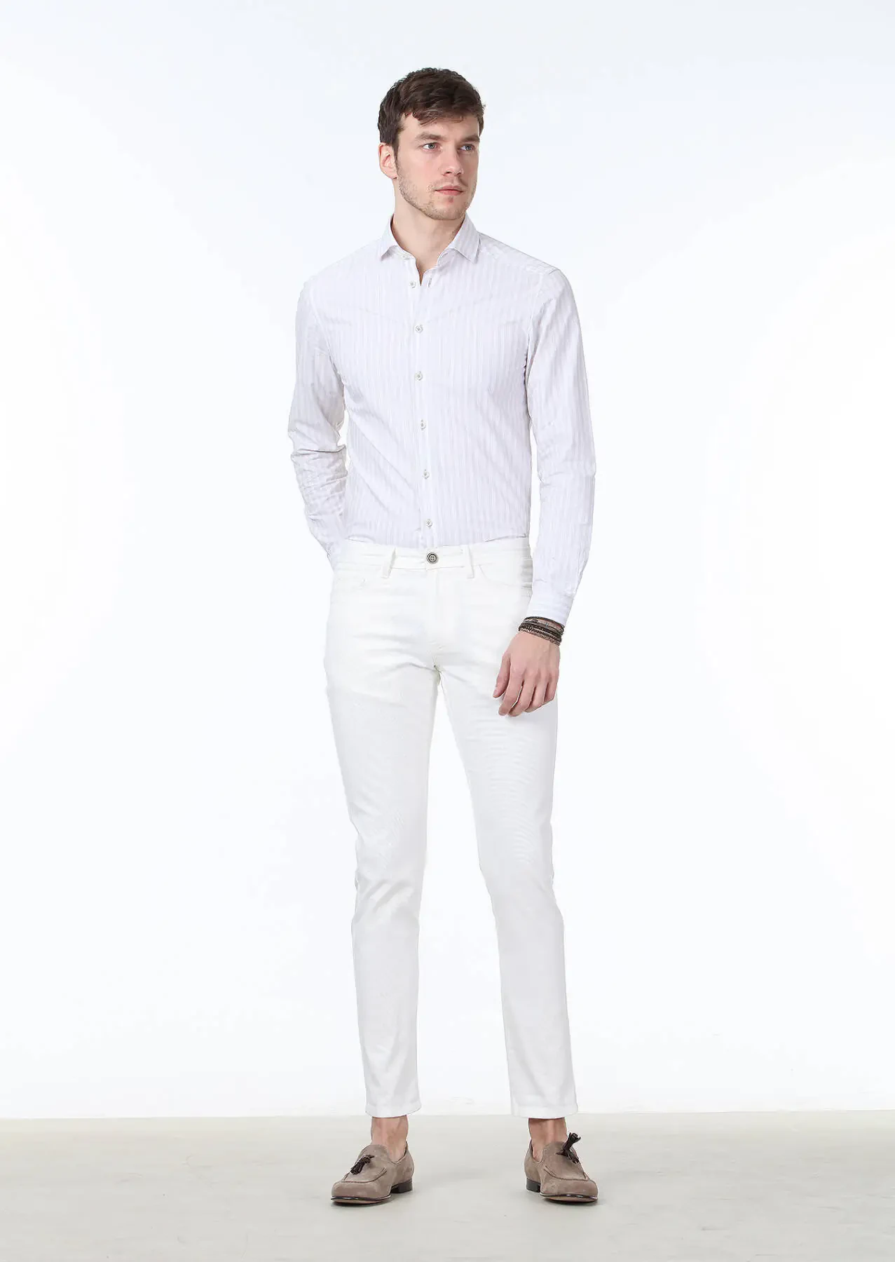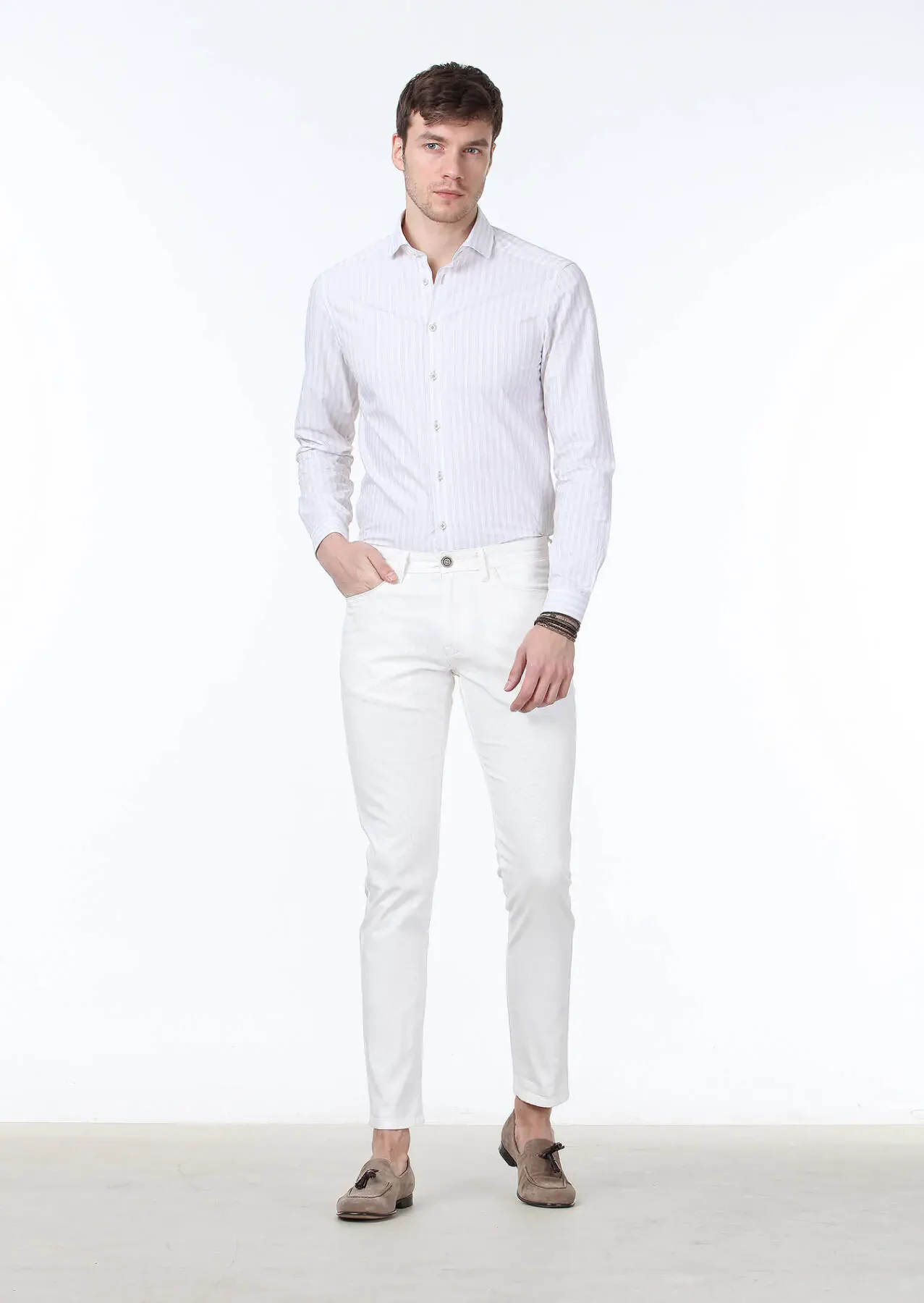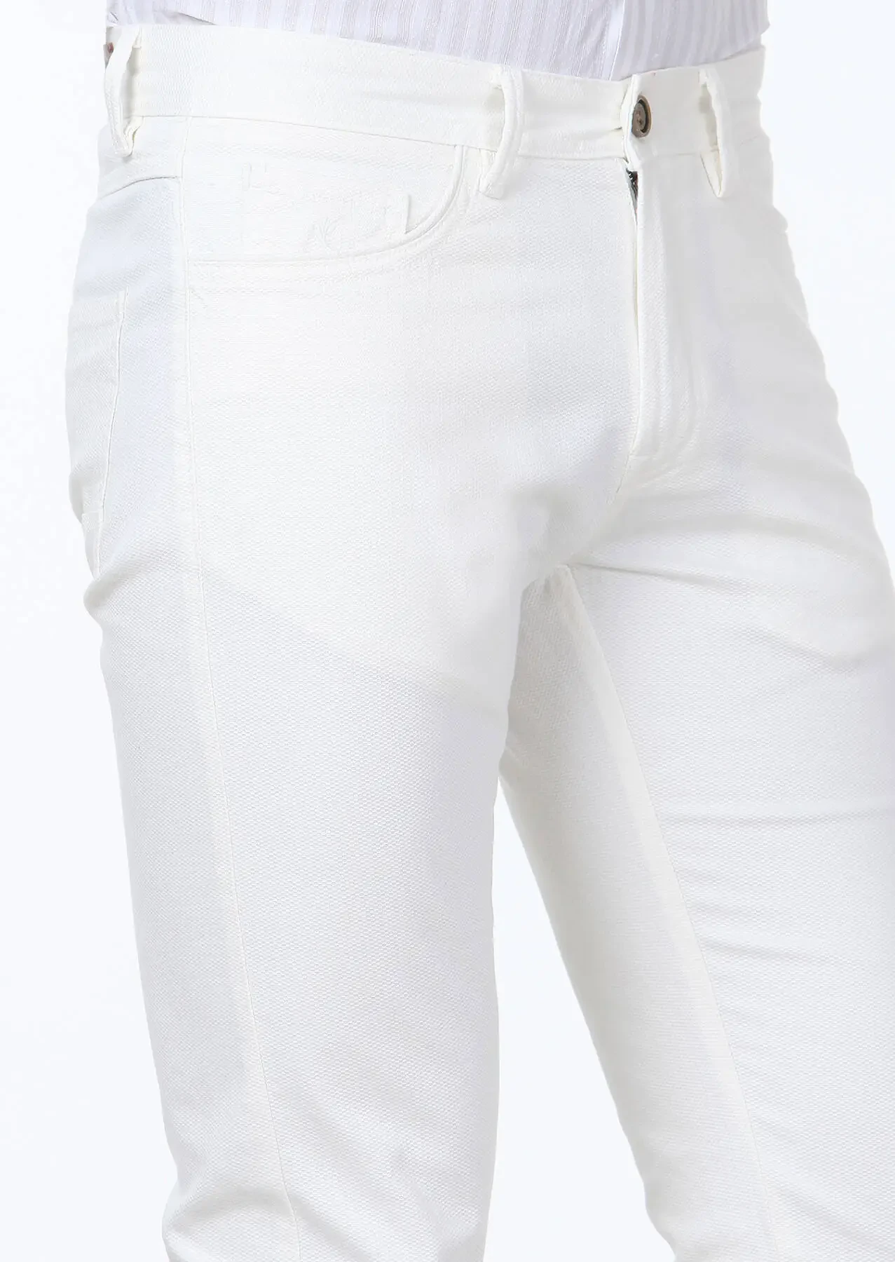Kırık Beyaz Dokuma Slim Fit Casual Pamuk Karışımlı Pantolon