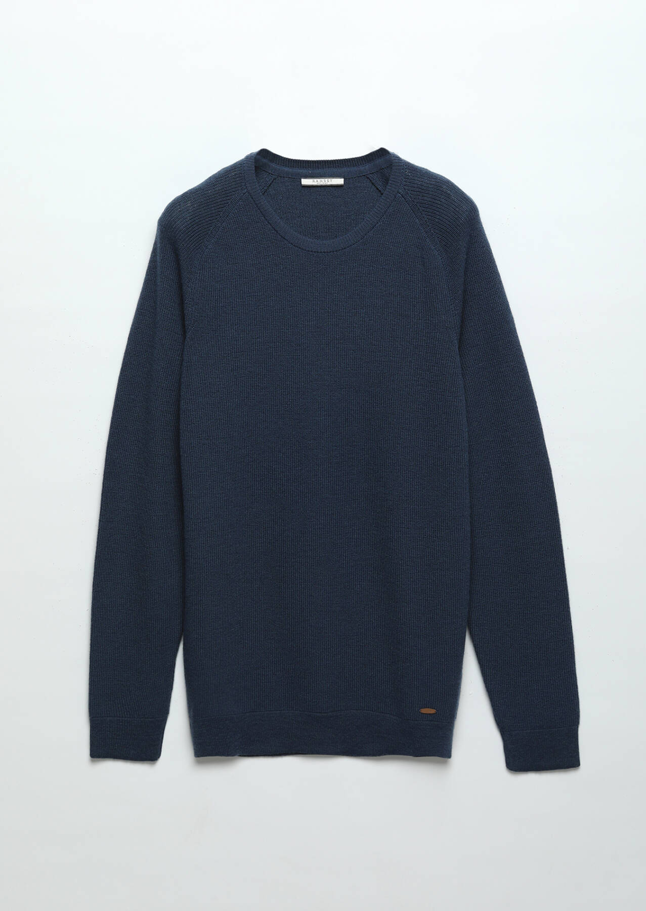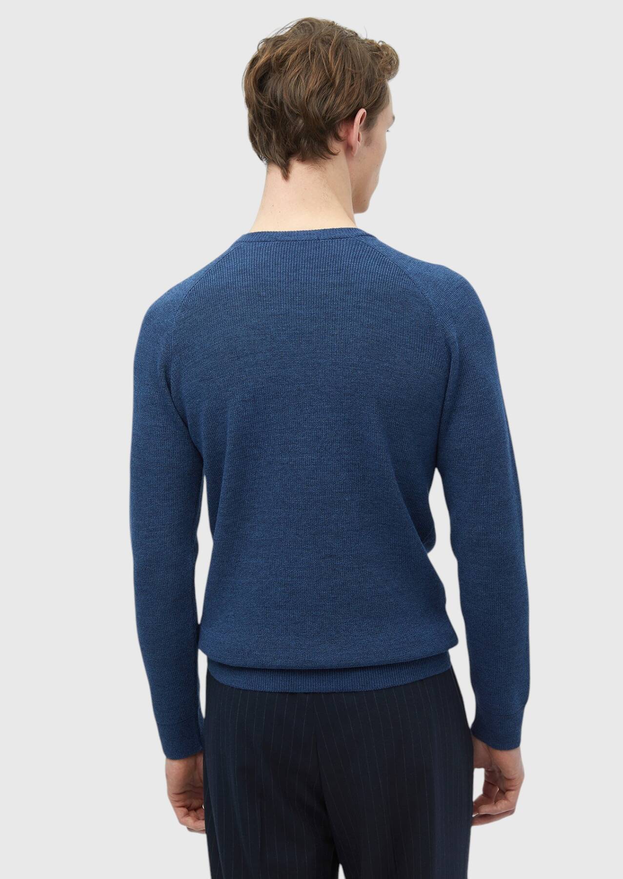 Koyu İndigo Bisiklet Yaka Jakarlı Yün Karışımlı Triko Kazak