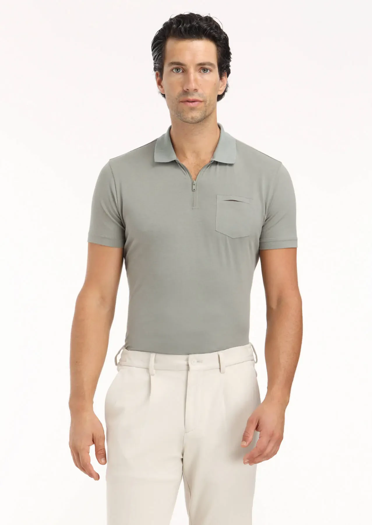 Küf Yeşili Düz Polo Yaka Pamuk Karışımlı T-Shirt