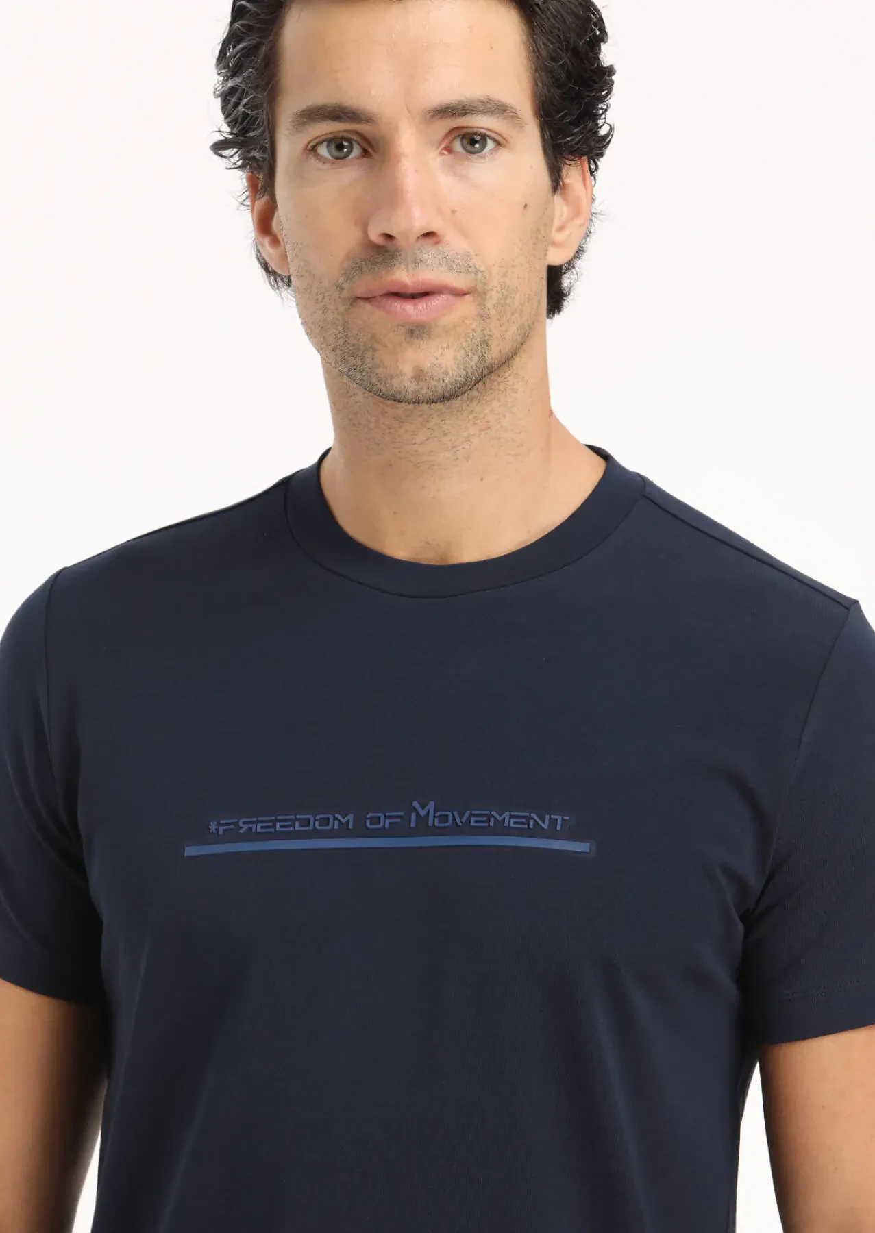Navy Blue Printed Crew Neck 100% Cotton T-Shirt
