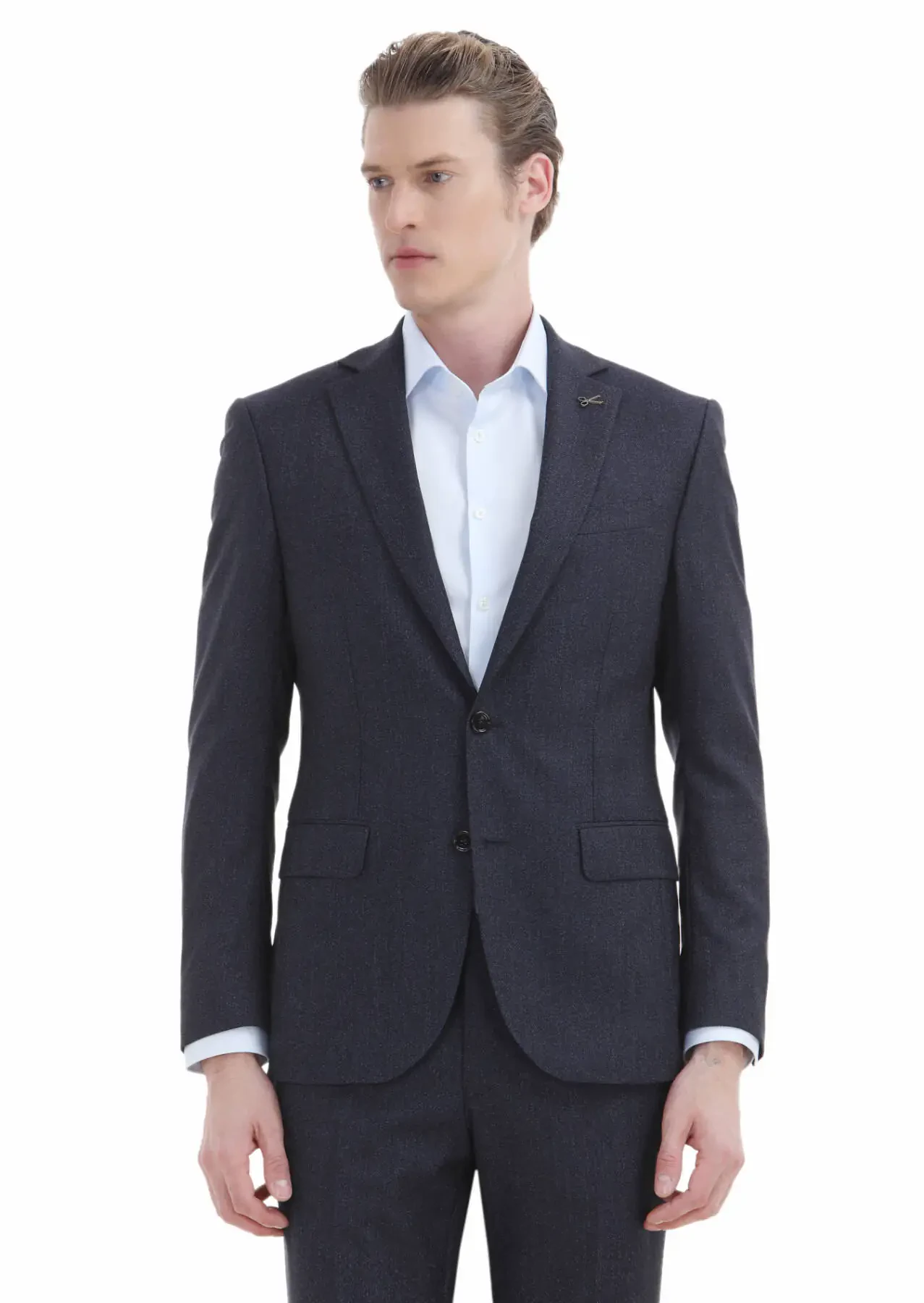 Lacivert Çizgili Modern Fit %100 Yün Takım Elbise