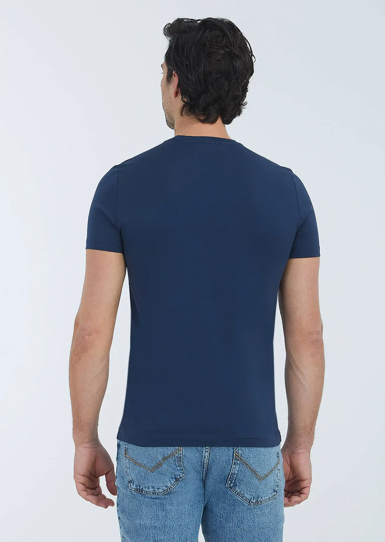 Lacivert Düz Bisiklet Yaka %100 Pamuk T-Shirt