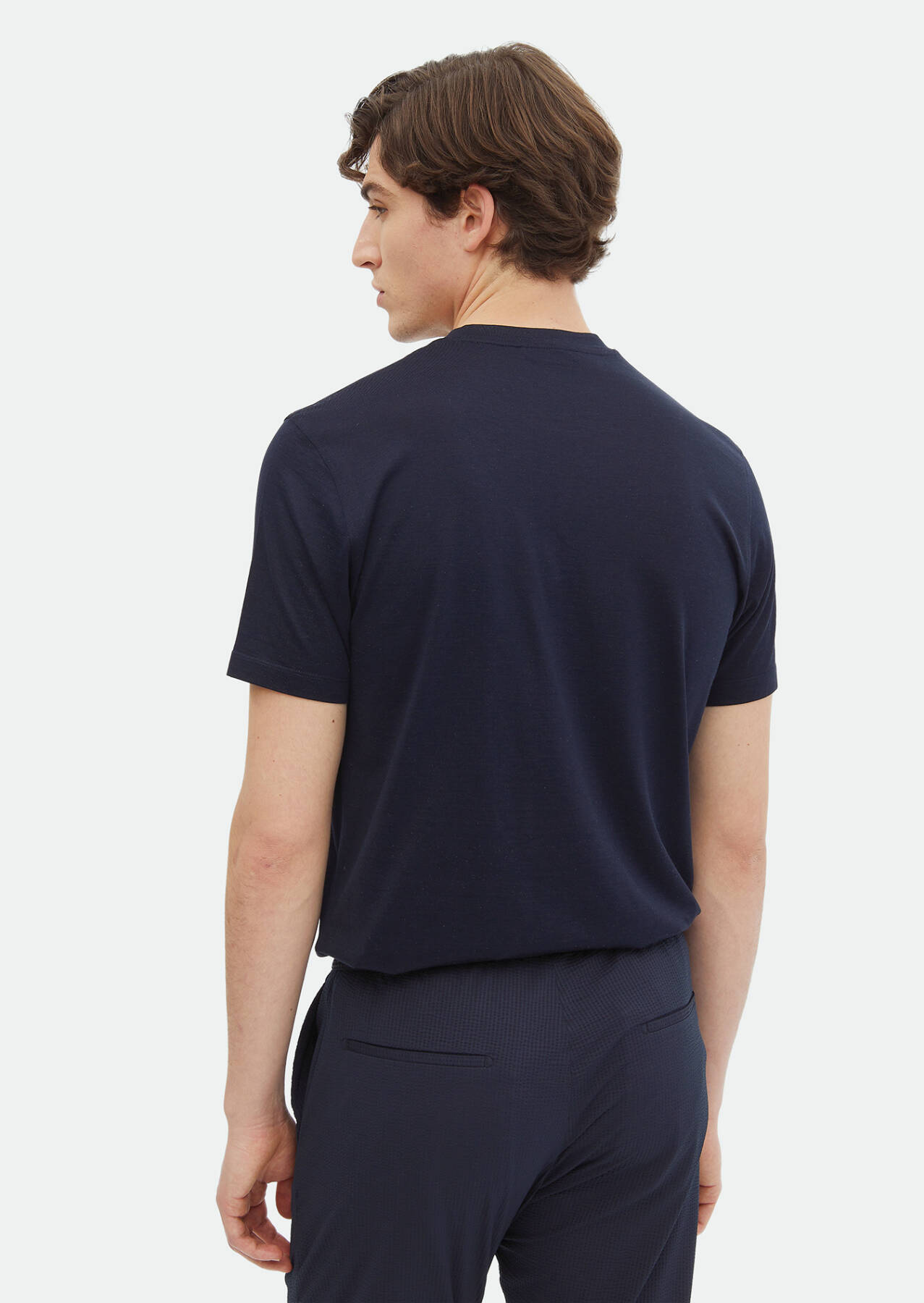 Lacivert Düz Bisiklet Yaka İpek Karışımlı T-Shirt