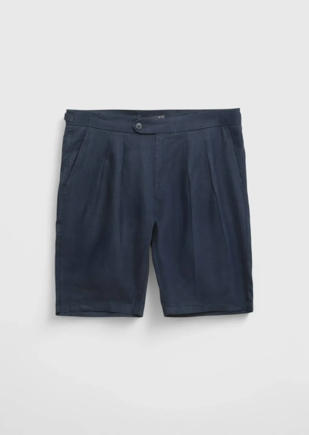 Lacivert Düz Dokuma Carrot Fit Casual %100 Keten Bermuda