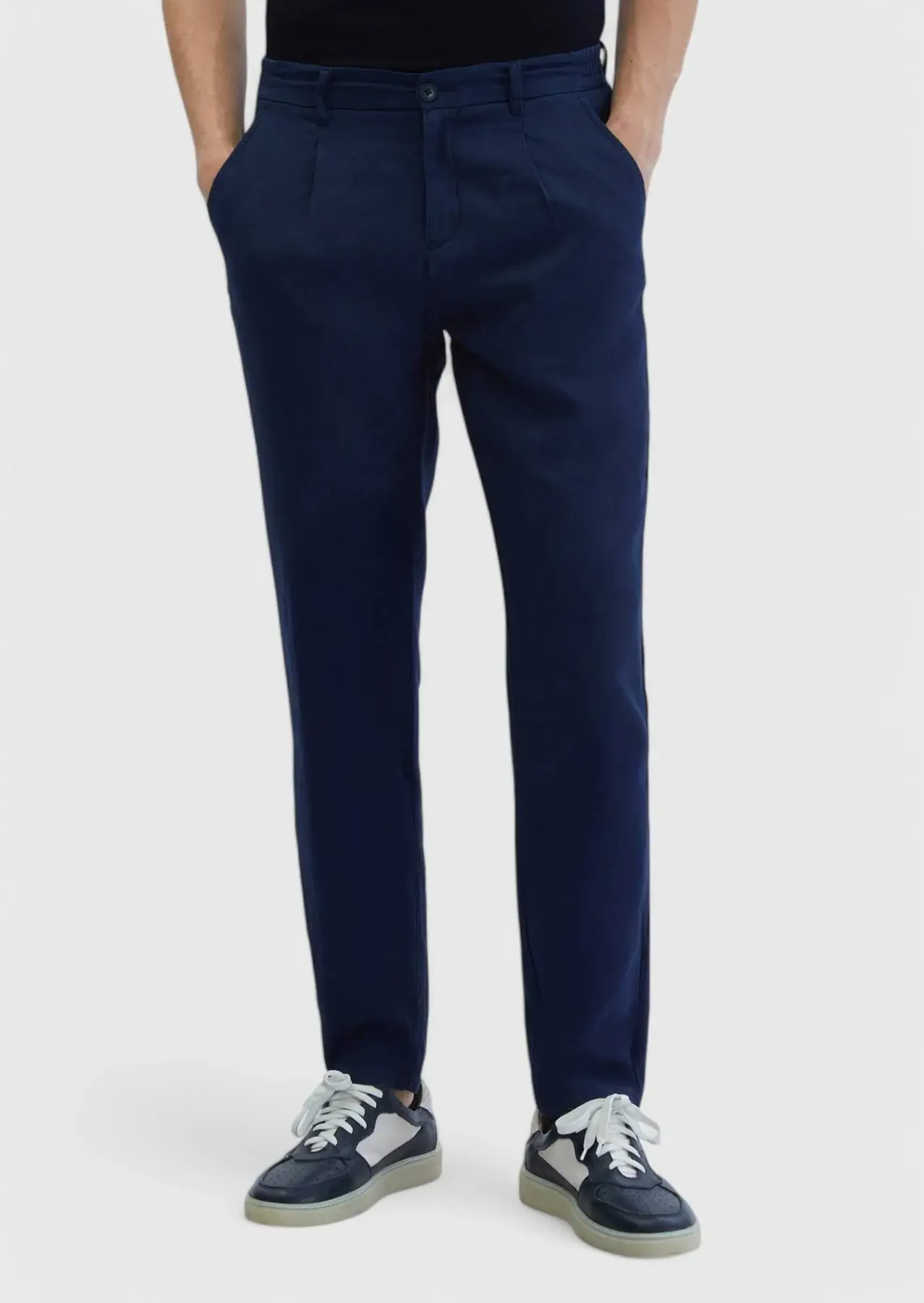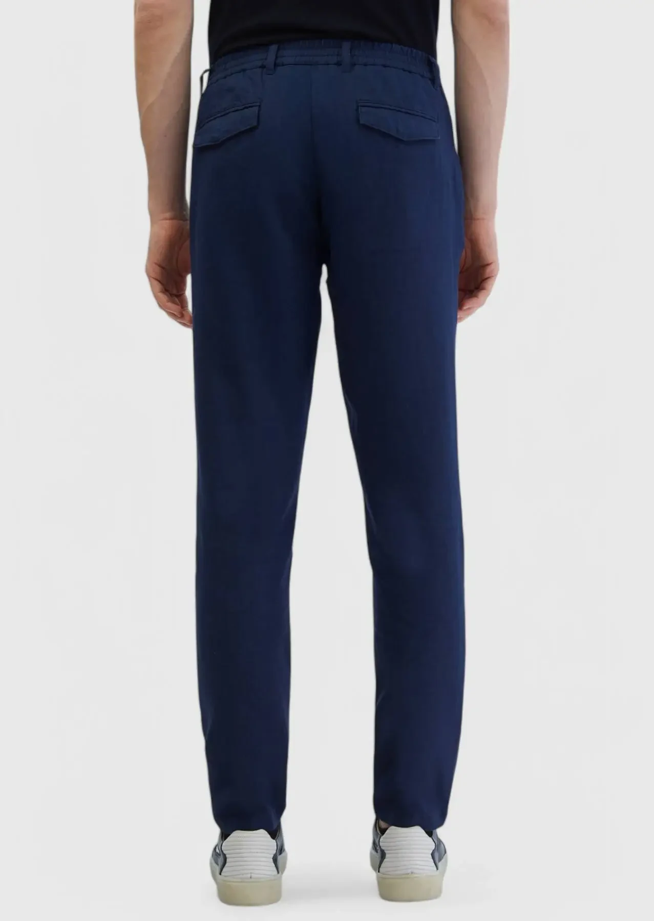 Navy Blue Weaving Jogging Fit Casual 100% Linen Trousers