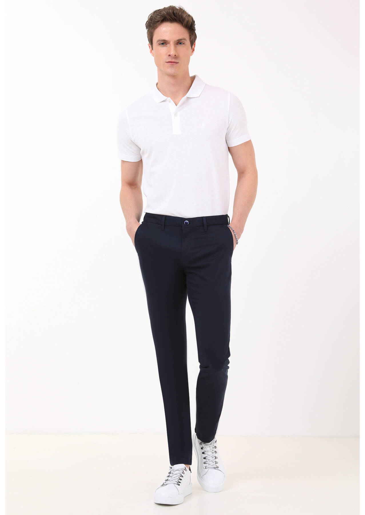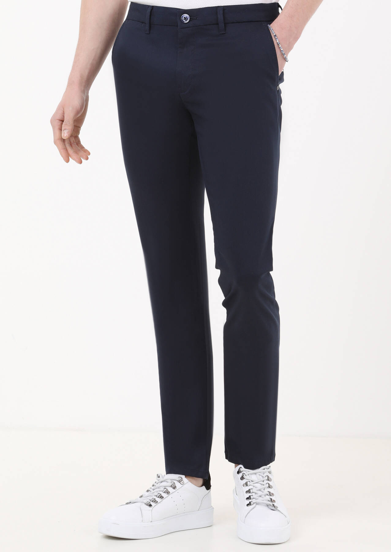 Lacivert Düz Dokuma Regular Fit Casual Pantolon