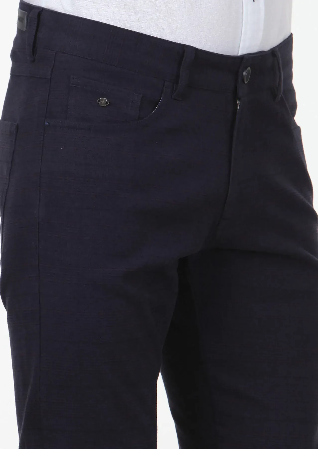 Lacivert Düz Dokuma Slim Fit Casual Pamuk Karışımlı Pantolon