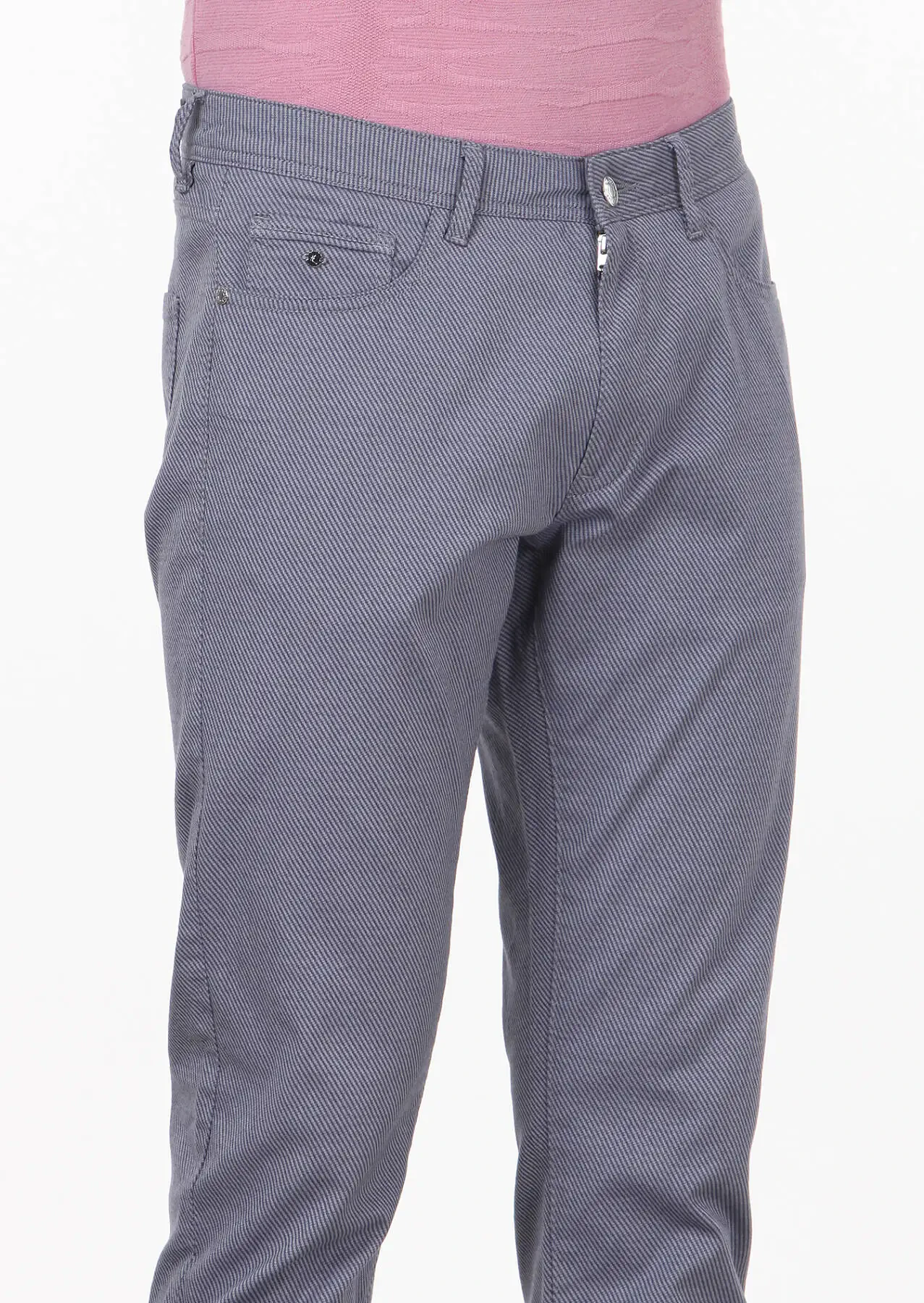 Navy Blue Weaving Slim Fit Casual Cotton Blended Trousers