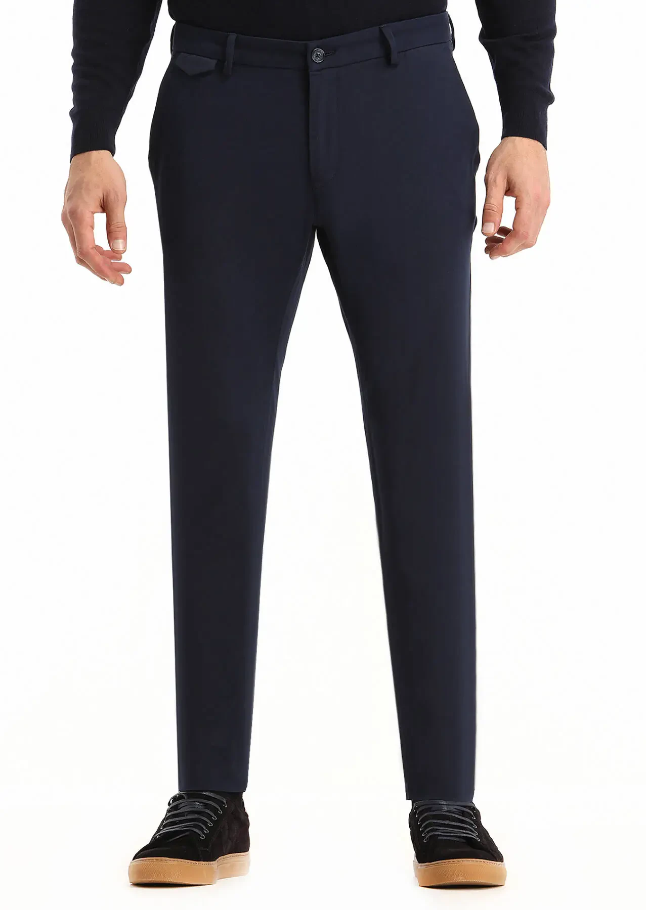 Lacivert Düz Dokuma Slim Fit Casual Pamuk Karışımlı Pantolon