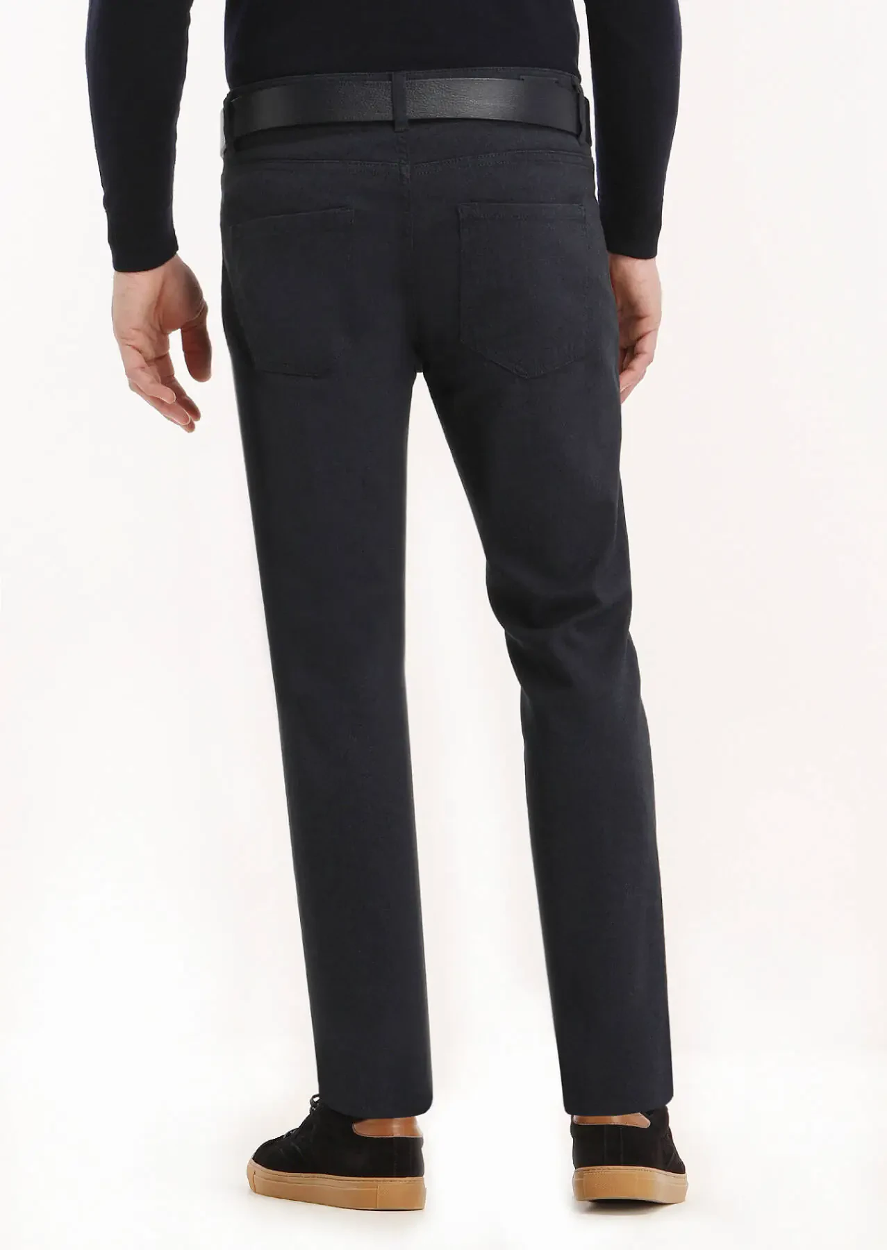 Navy Blue Weaving Slim Fit Casual Cotton Blended Trousers