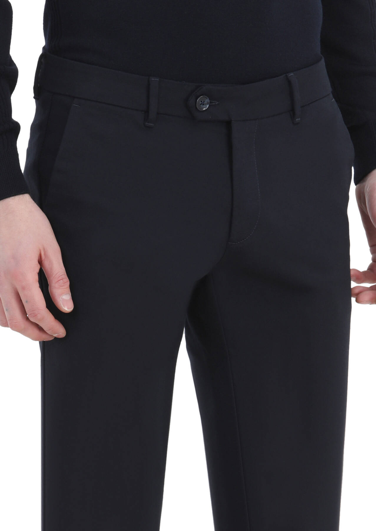 Lacivert Düz Dokuma Slim Fit Casual Pamuk Karışımlı Pantolon