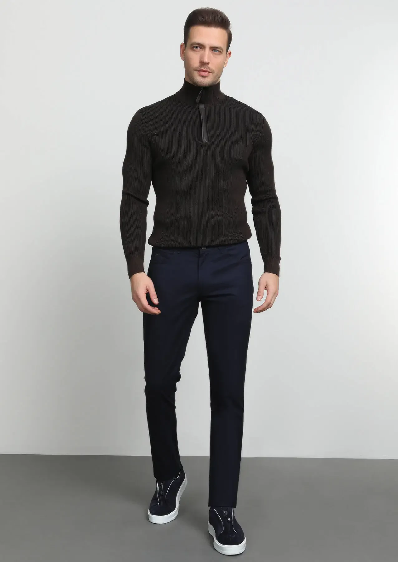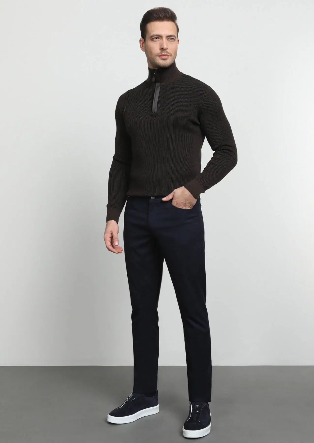 Lacivert Düz Dokuma Slim Fit Casual Pantolon