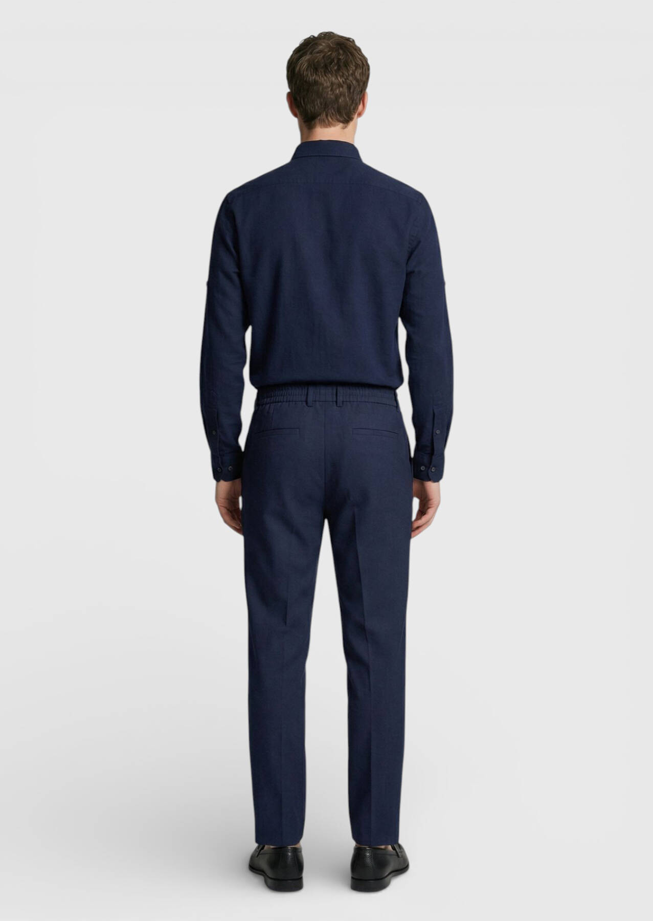 Ramsey’in "Business Comfort" felsefesini yansıtan bu lacivert pantolon, esnek bel yapısıyla gün boyu hareket özgürlüğü sunarken keskin ütü iziyle rafine bir duruş sergiliyor. Modern silüeti ve tasarım odaklı detaylarıyla ofis şıklığını konforla buluşturan bu parça, Penny Loafer ve casual gömleklerle birleştiğinde kusursuz bir stil manifestosuna dönüşüyor. Şehirli erkeğin dinamik temposuna eşlik eden bu sofistike tasarımla Ramsey şıklığını keşfedin.
