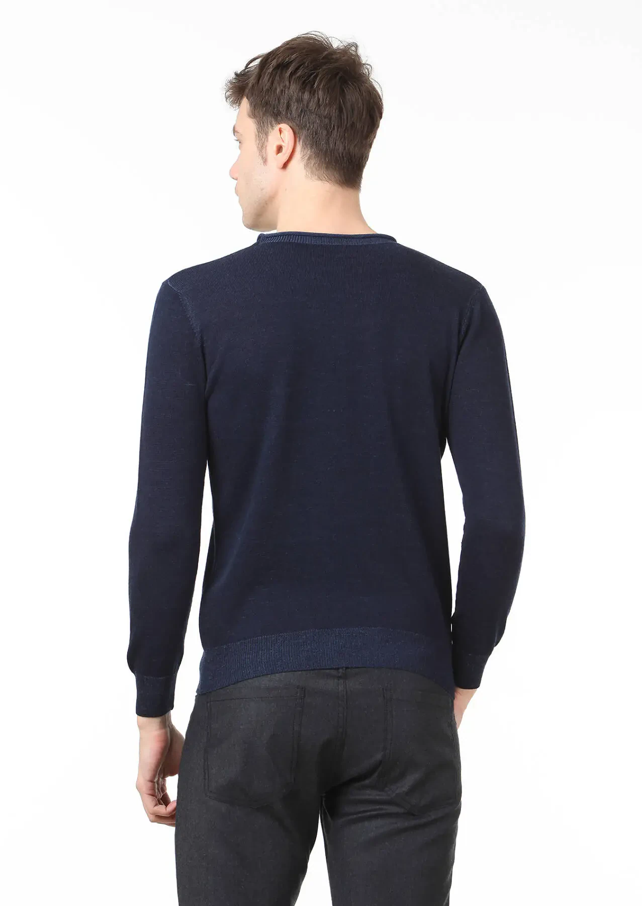 Lacivert Düz Örgü Yün Karışımlı Triko Kazak