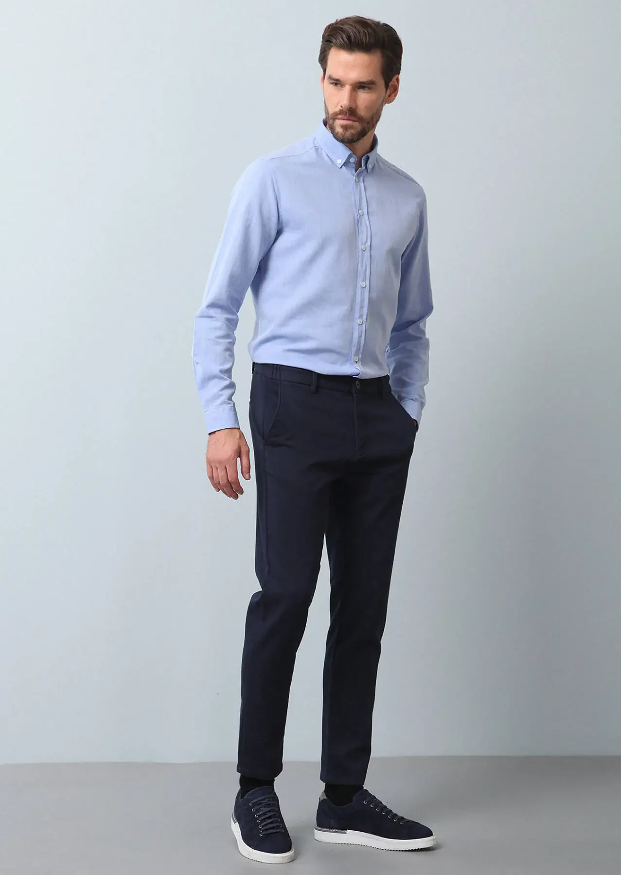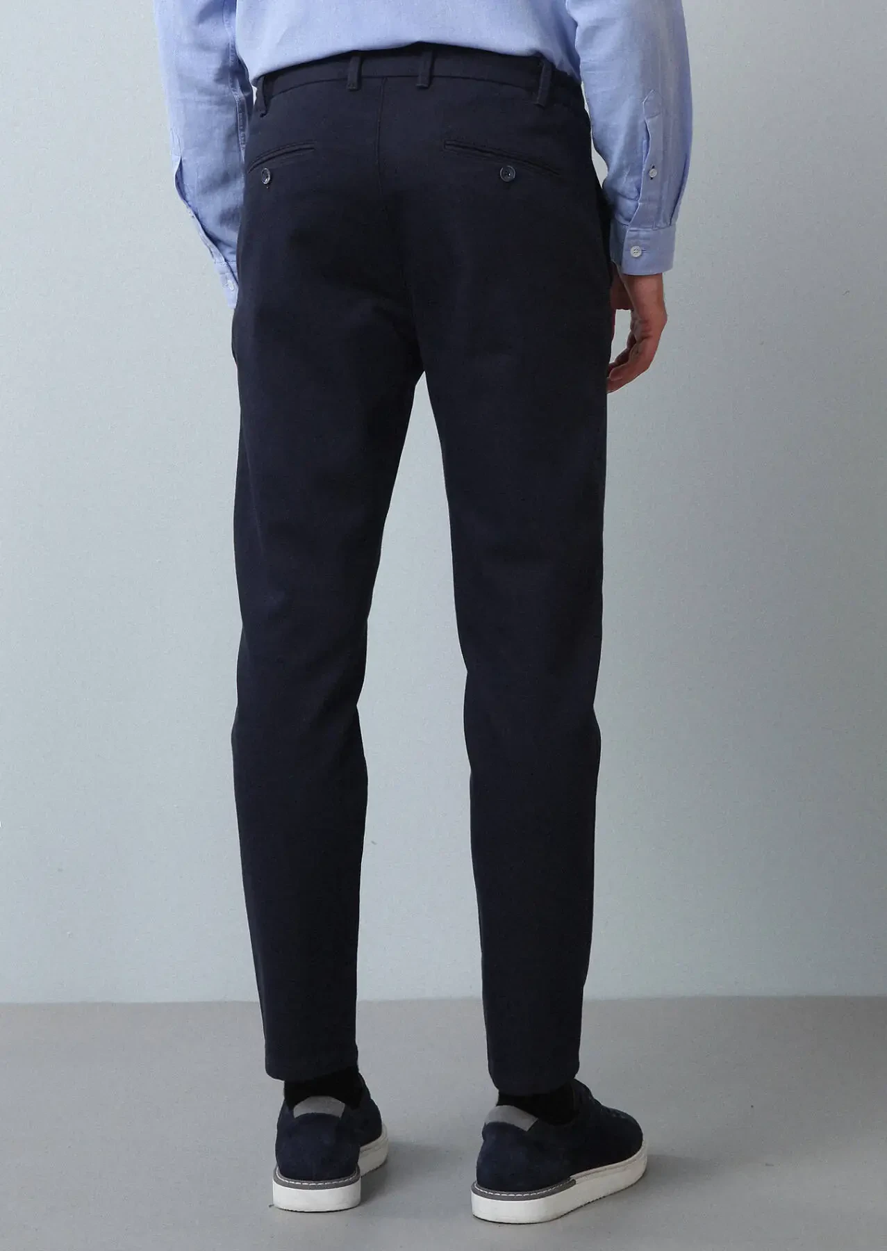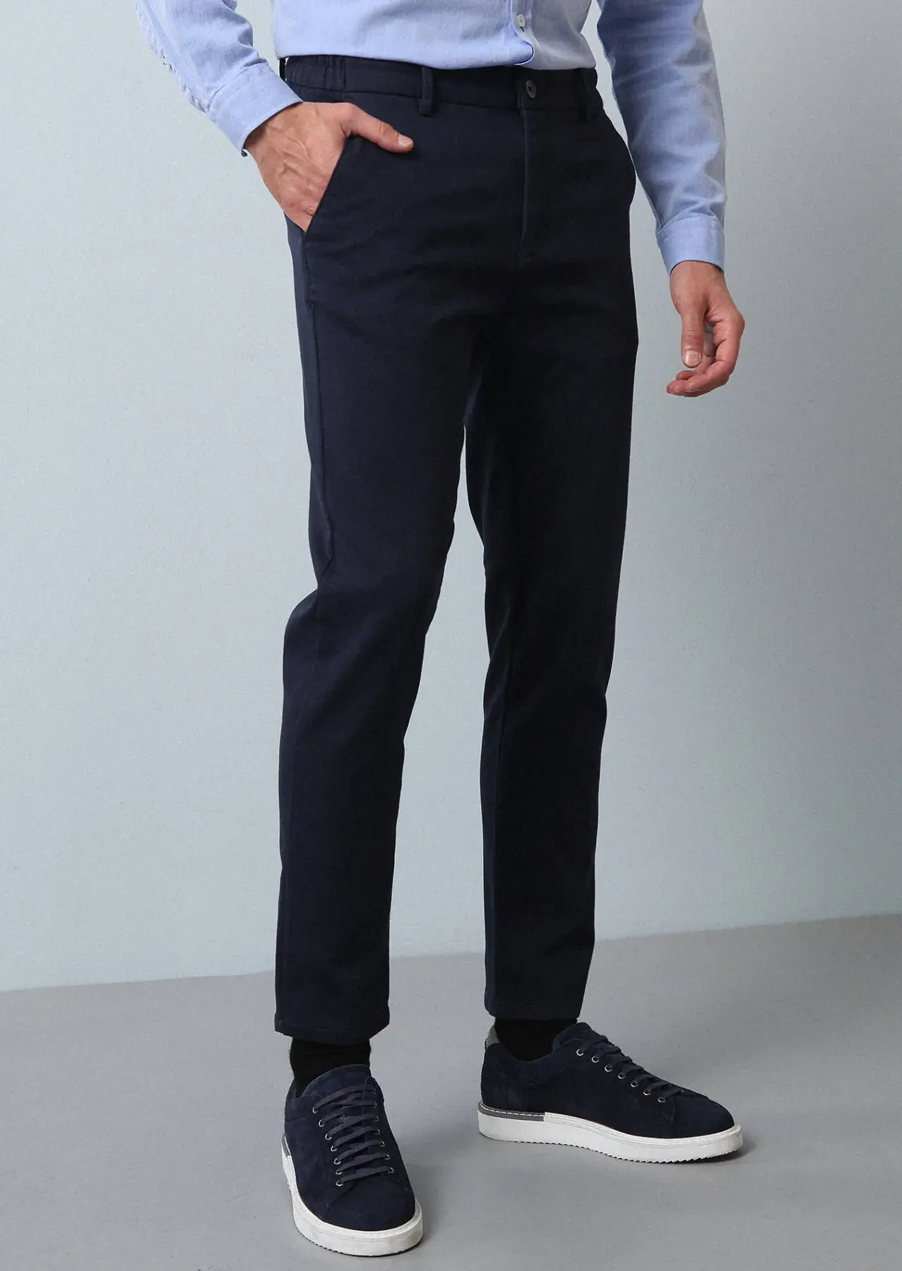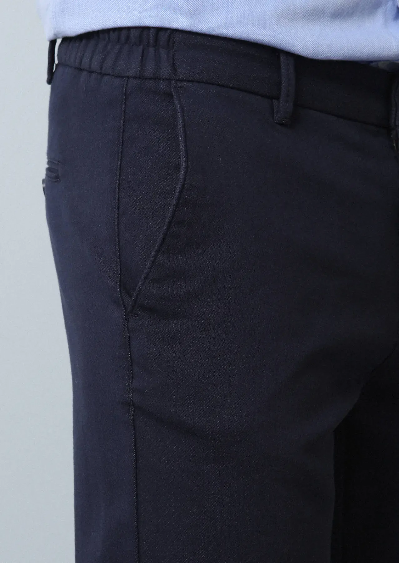 Navy Blue Knitting Jogging Fit Casual Cotton Blended Trousers