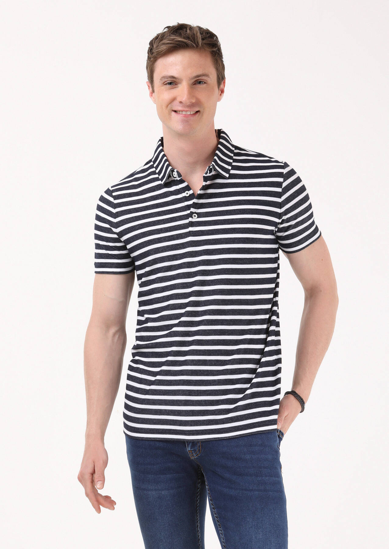 Lacivert Jakarlı Polo Yaka %100 Pamuk T-Shirt