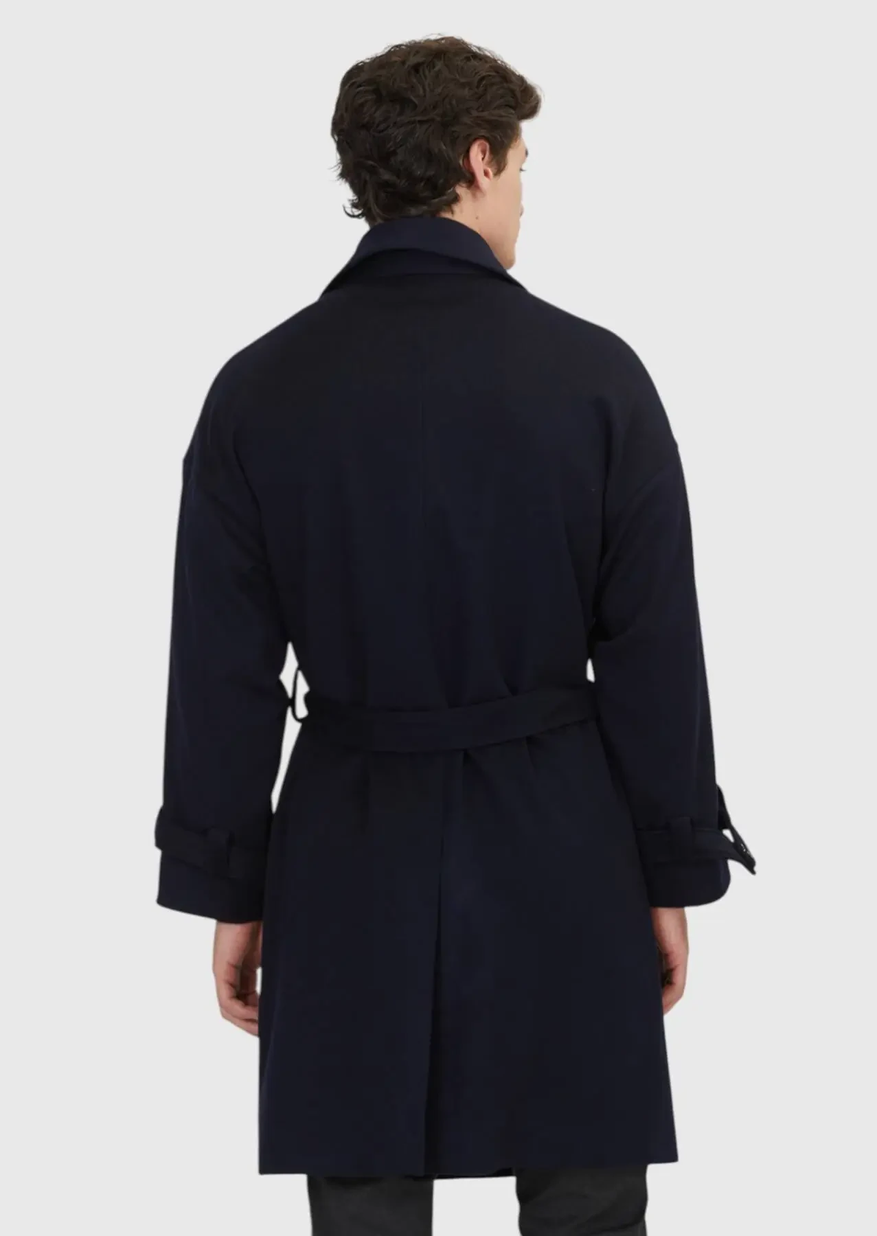 Lacivert Oversize Fit Casual Dokuma Palto