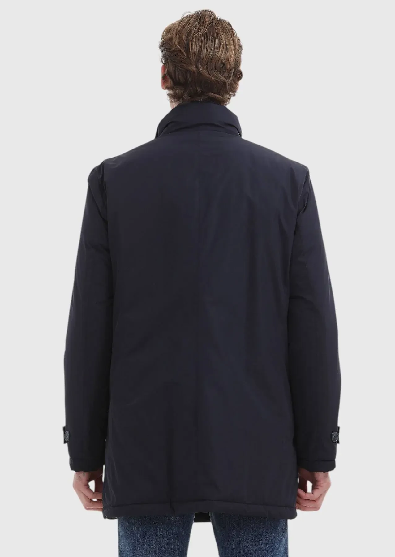 Navy Blue Regular Fit Turtleneck Casual Weaving Coat