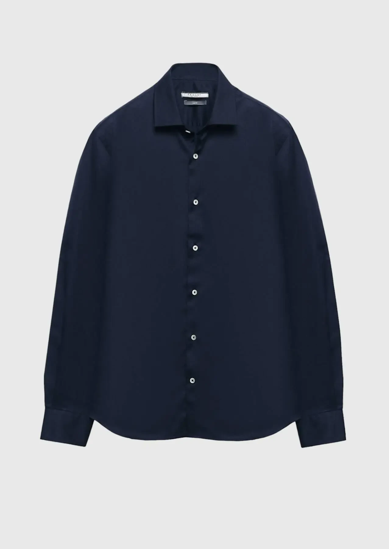 Lacivert Regular Fit Dokuma Klasik %100 Pamuk Gömlek