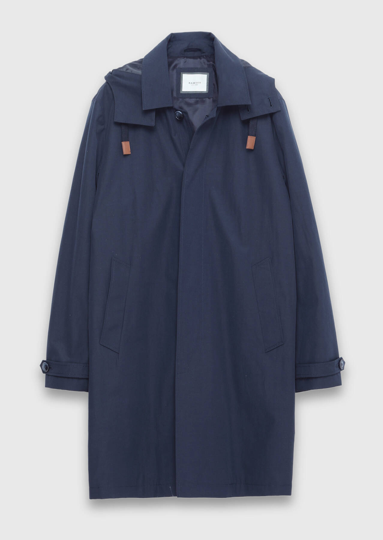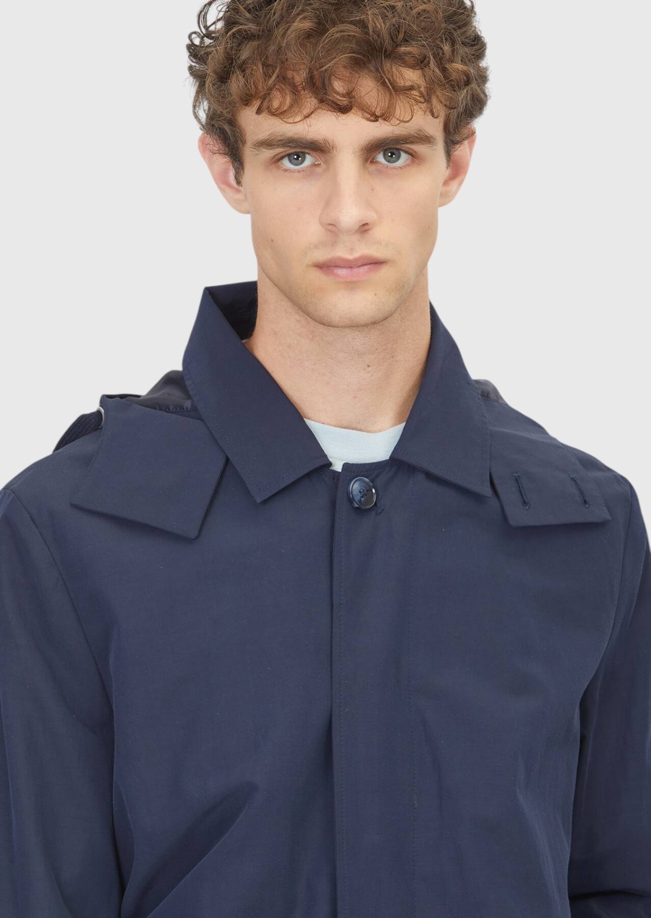 Lacivert Regular Fit Kapüşonlu Casual Teknik Pardösü