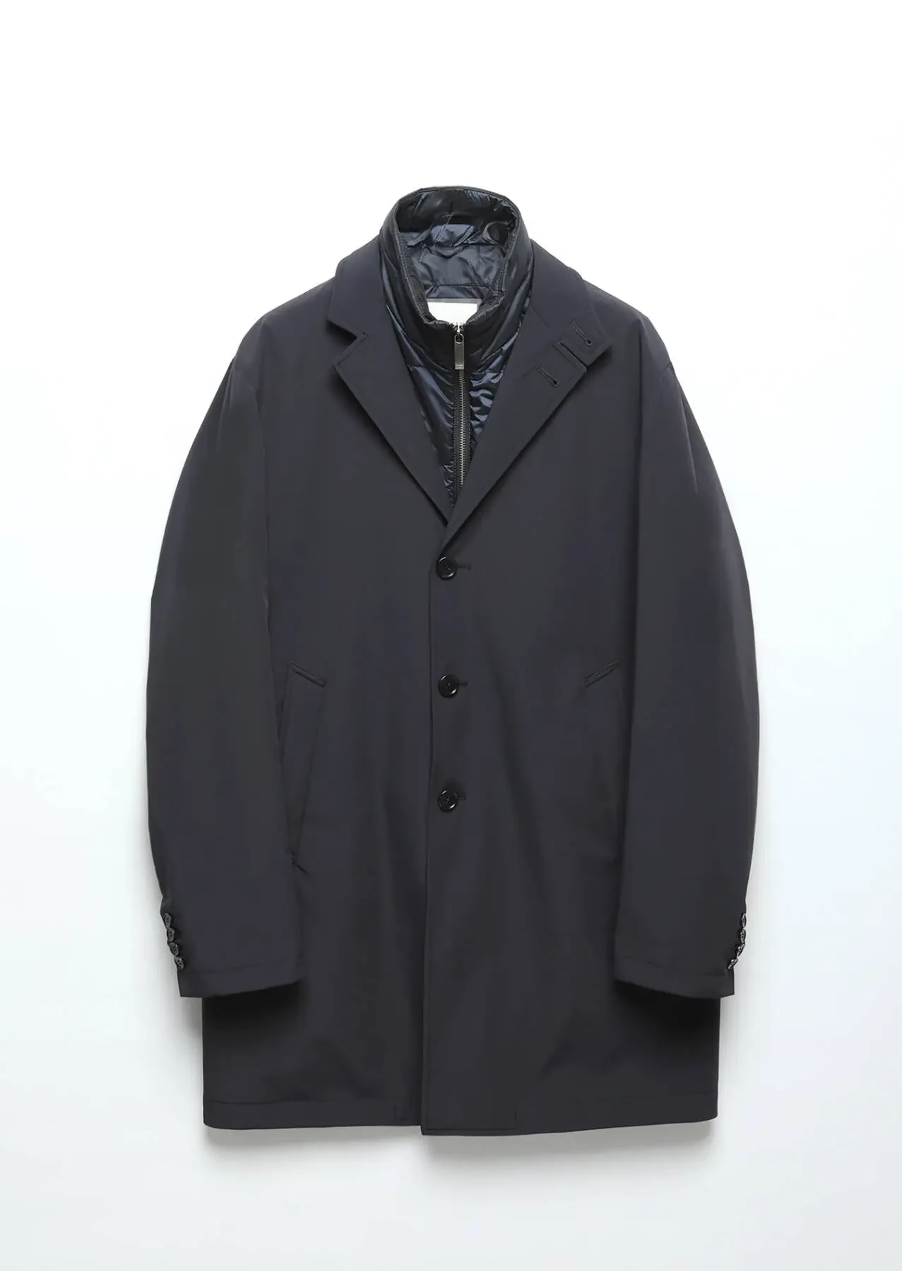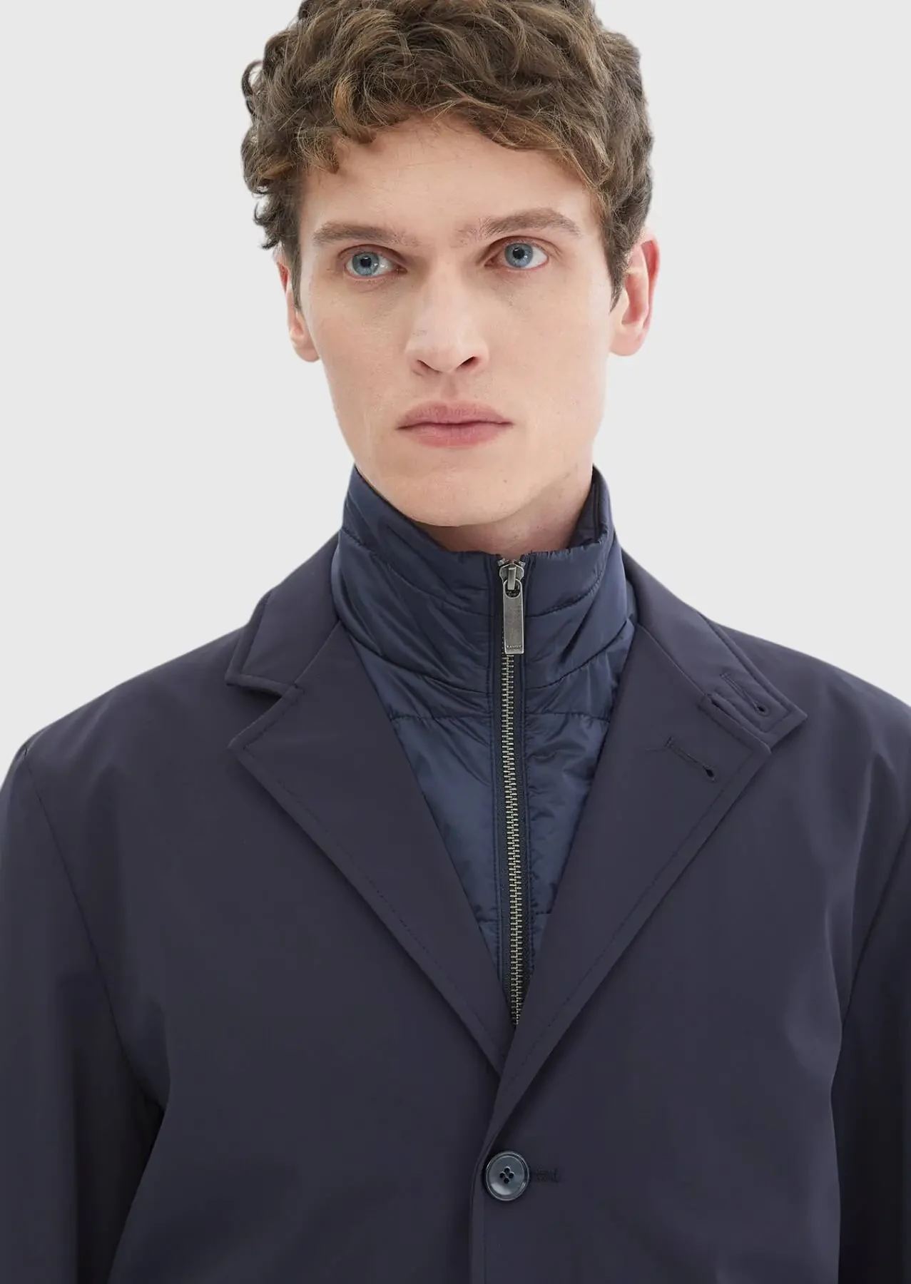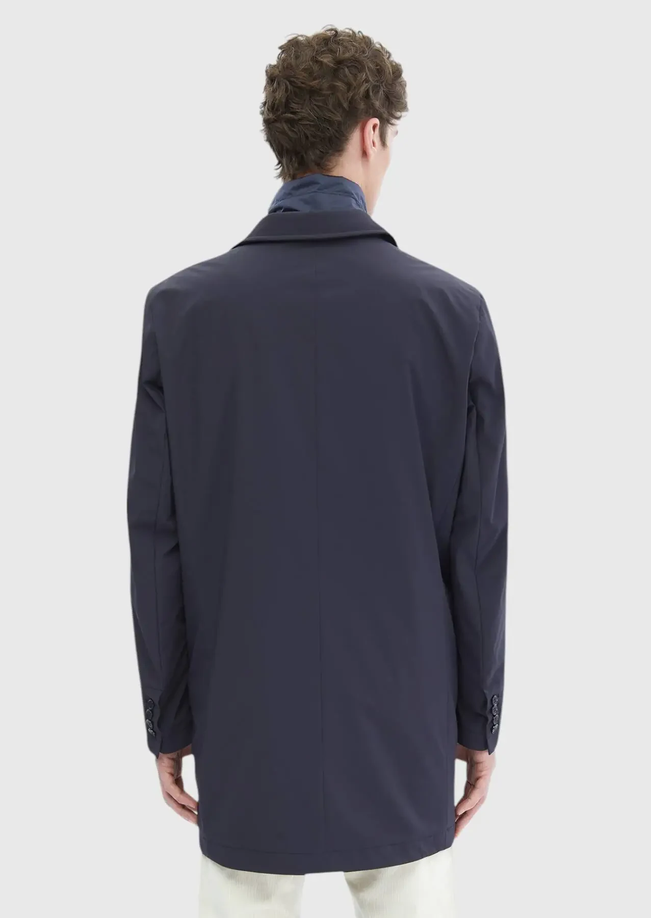 Navy Blue Regular Fit Double Breasted Collar Casual Weaving Rain Coat