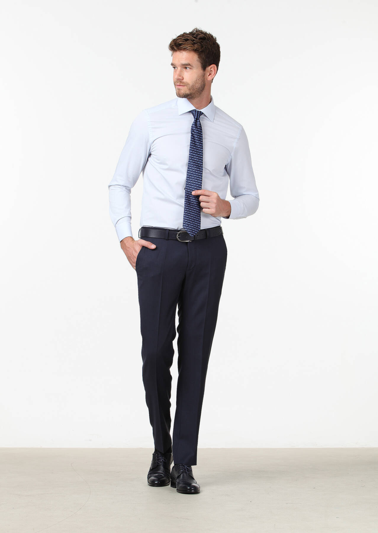 Light Blue Plain Regular Fit Weaving Classical Cotton Blended Shirt