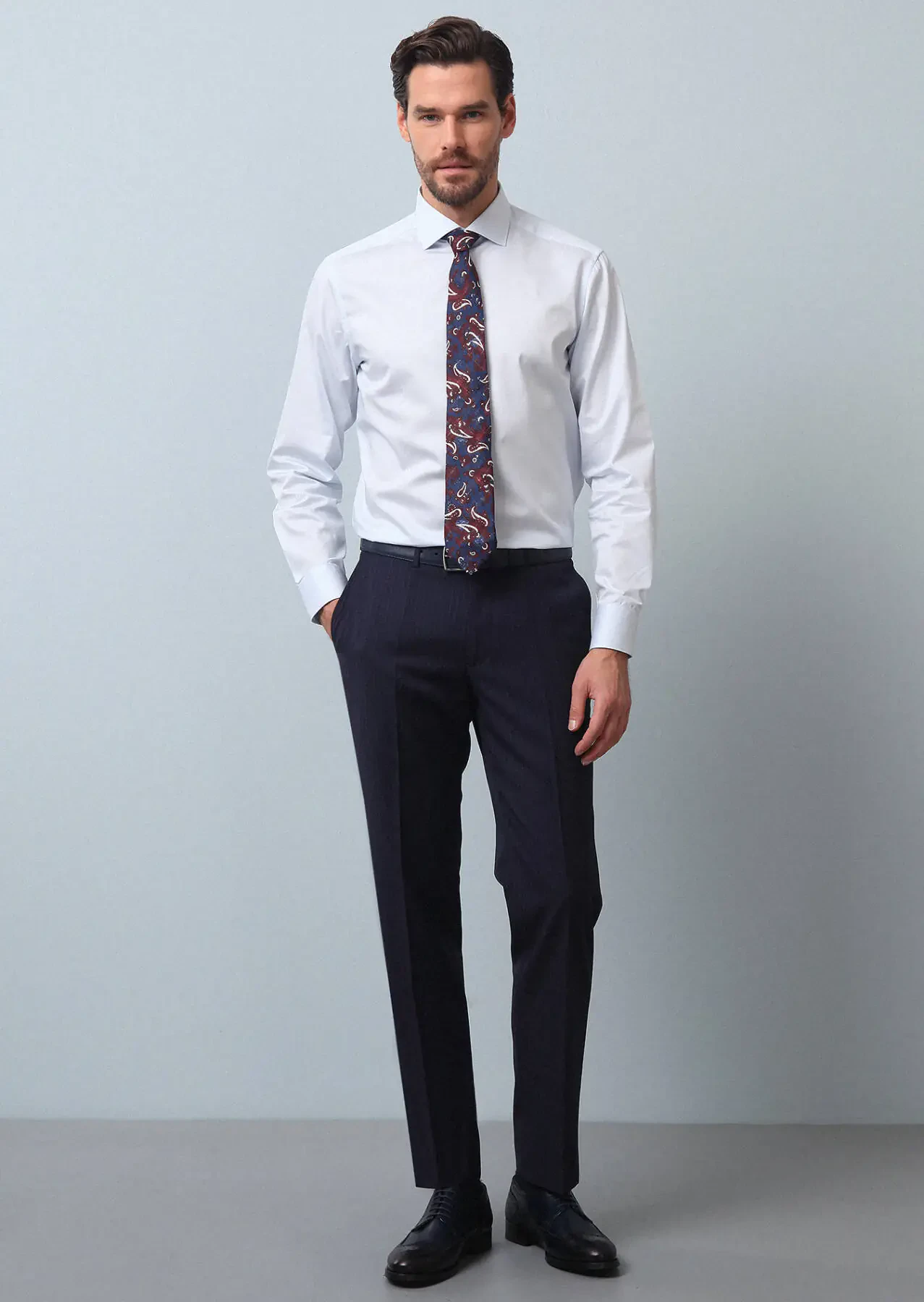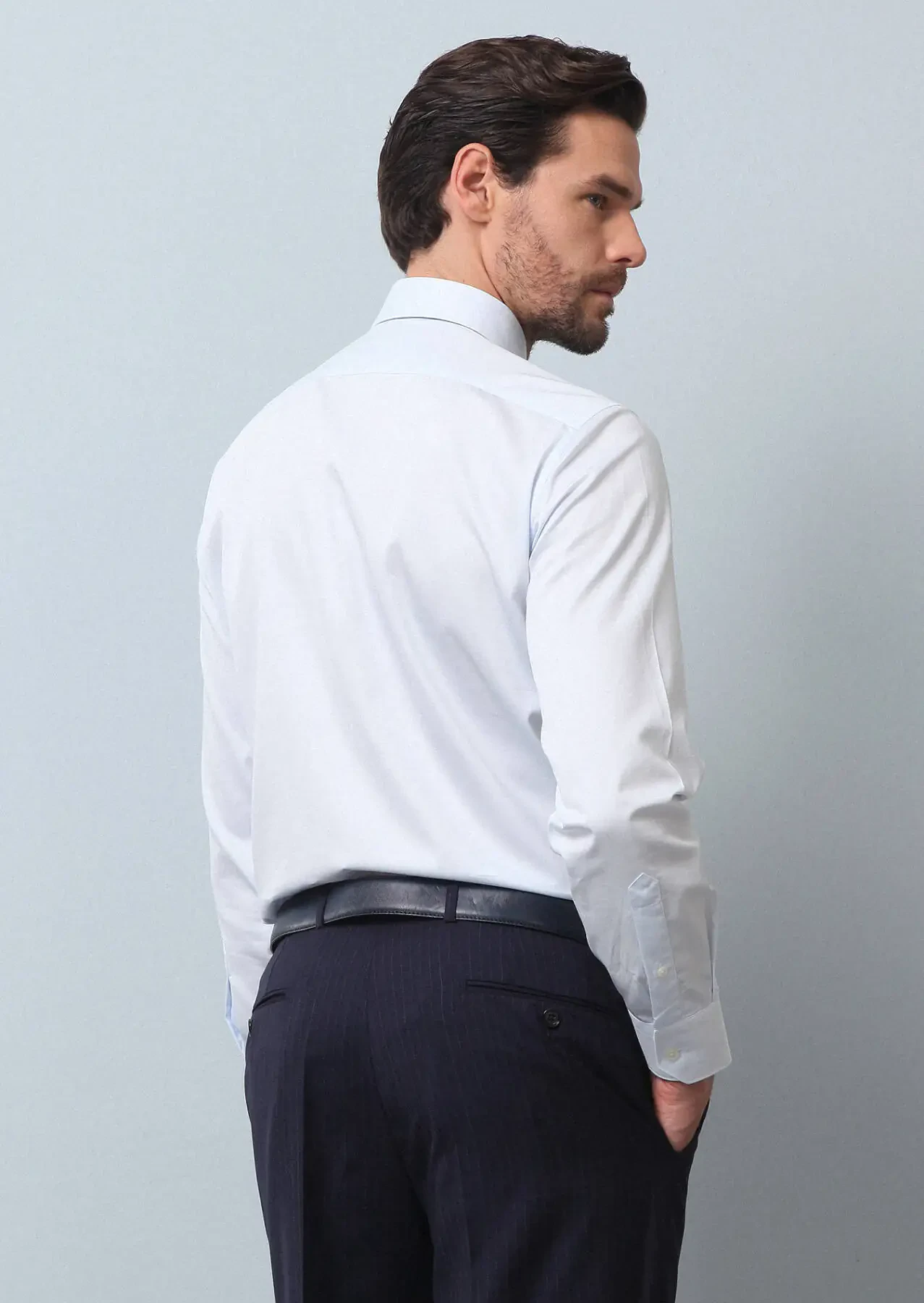 Light Blue Plain Slim Fit Weaving Classical Cotton Blended Shirt