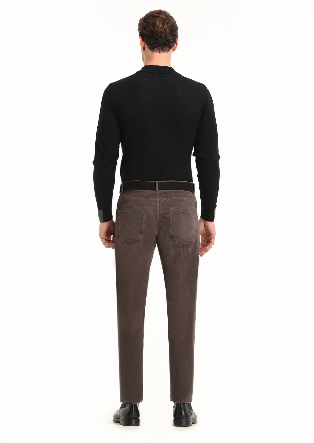 Light Brown Weaving Slim Fit Casual Cotton Blended Trousers