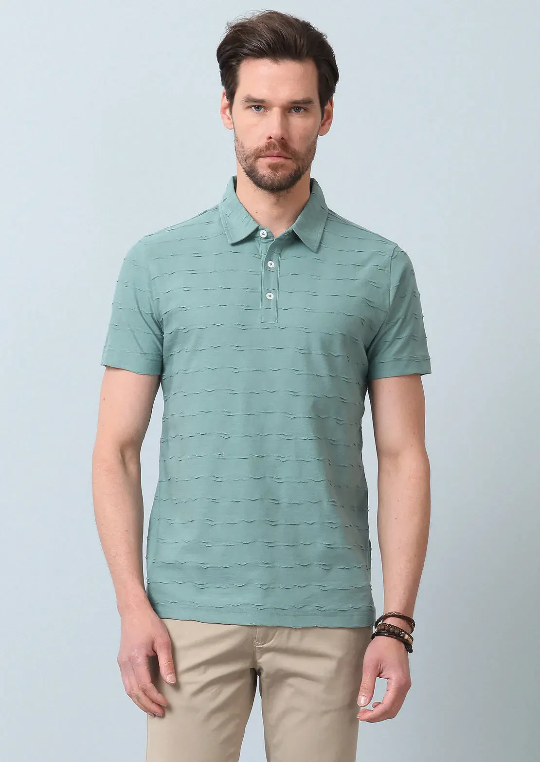 Light Green Jacquard Polo Neck 100% Cotton T-Shirt