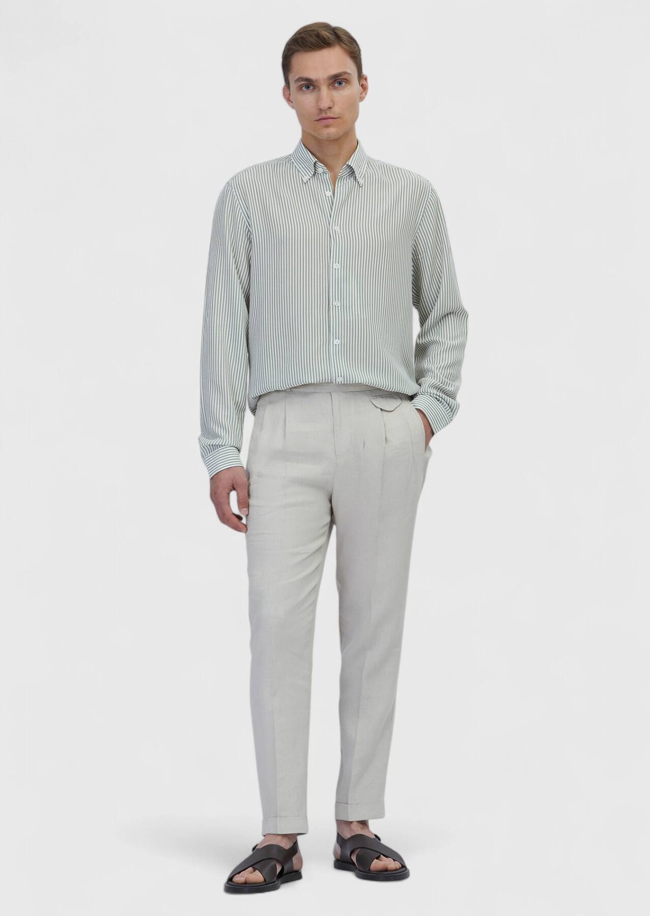 Model: Height: 187 cm, Chest: 98 cm, Waist: 78 cm, Hips: 96 cm, Size: 40
