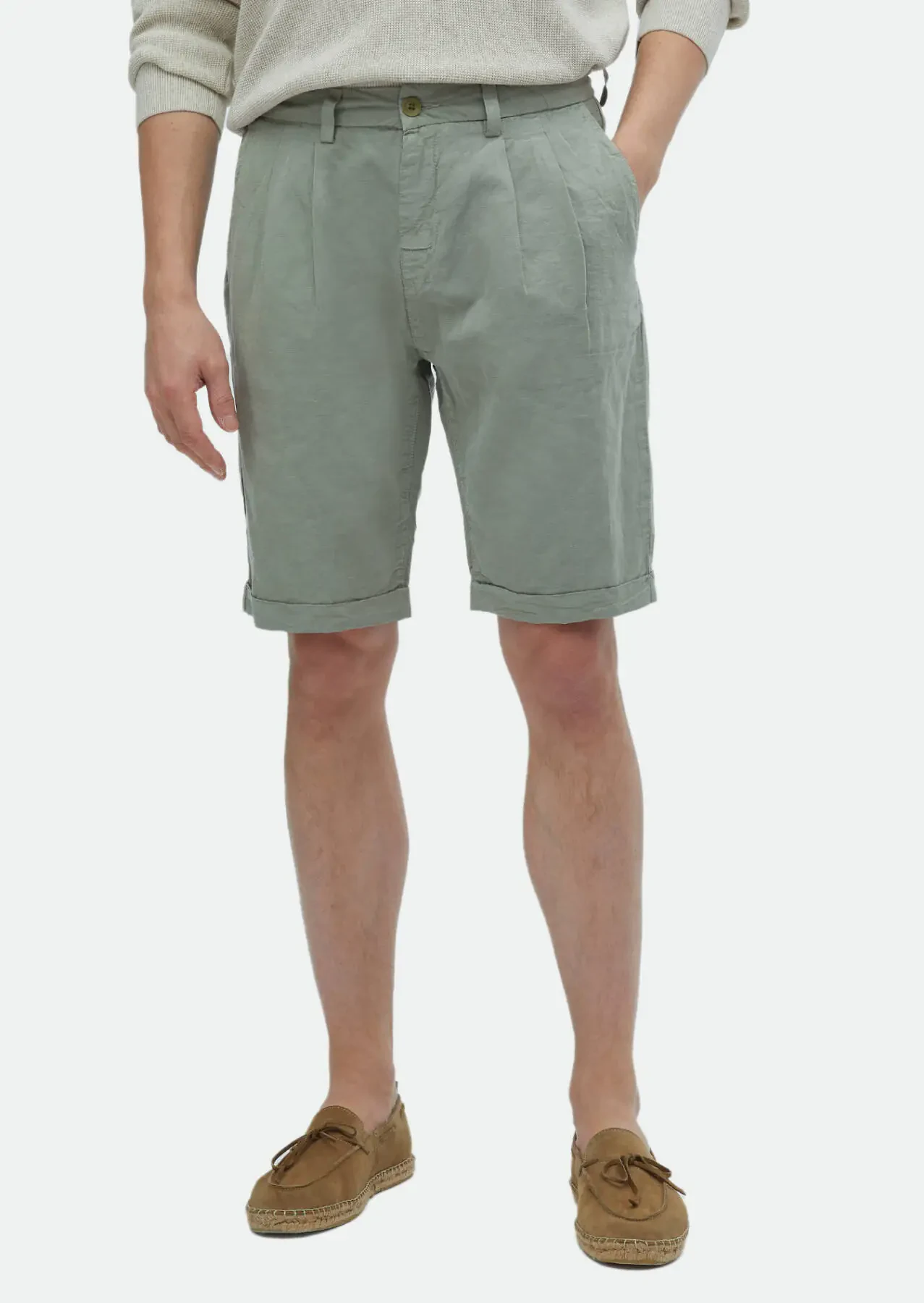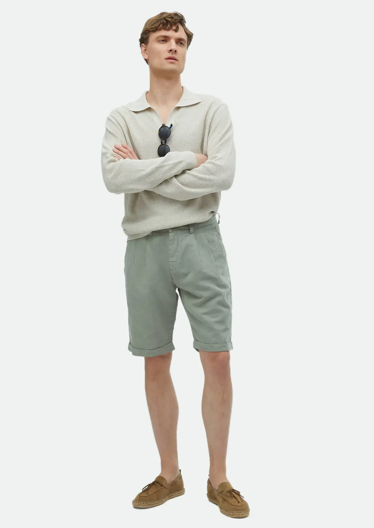 Light Green Weaving Carrot Fit Casual 100% Cotton Bermuda