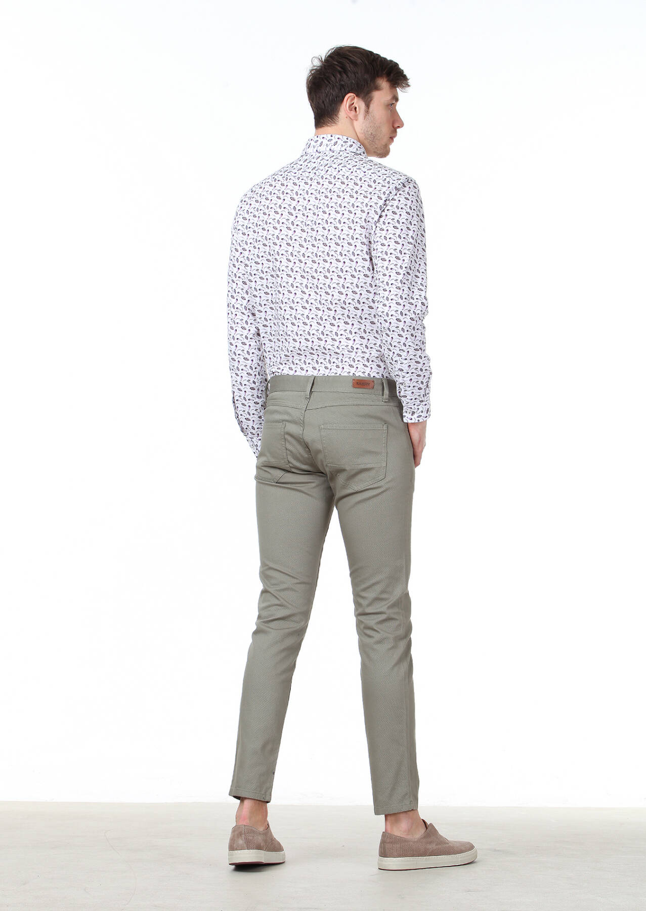 Light Green Weaving Slim Fit Casual Cotton Blended Trousers