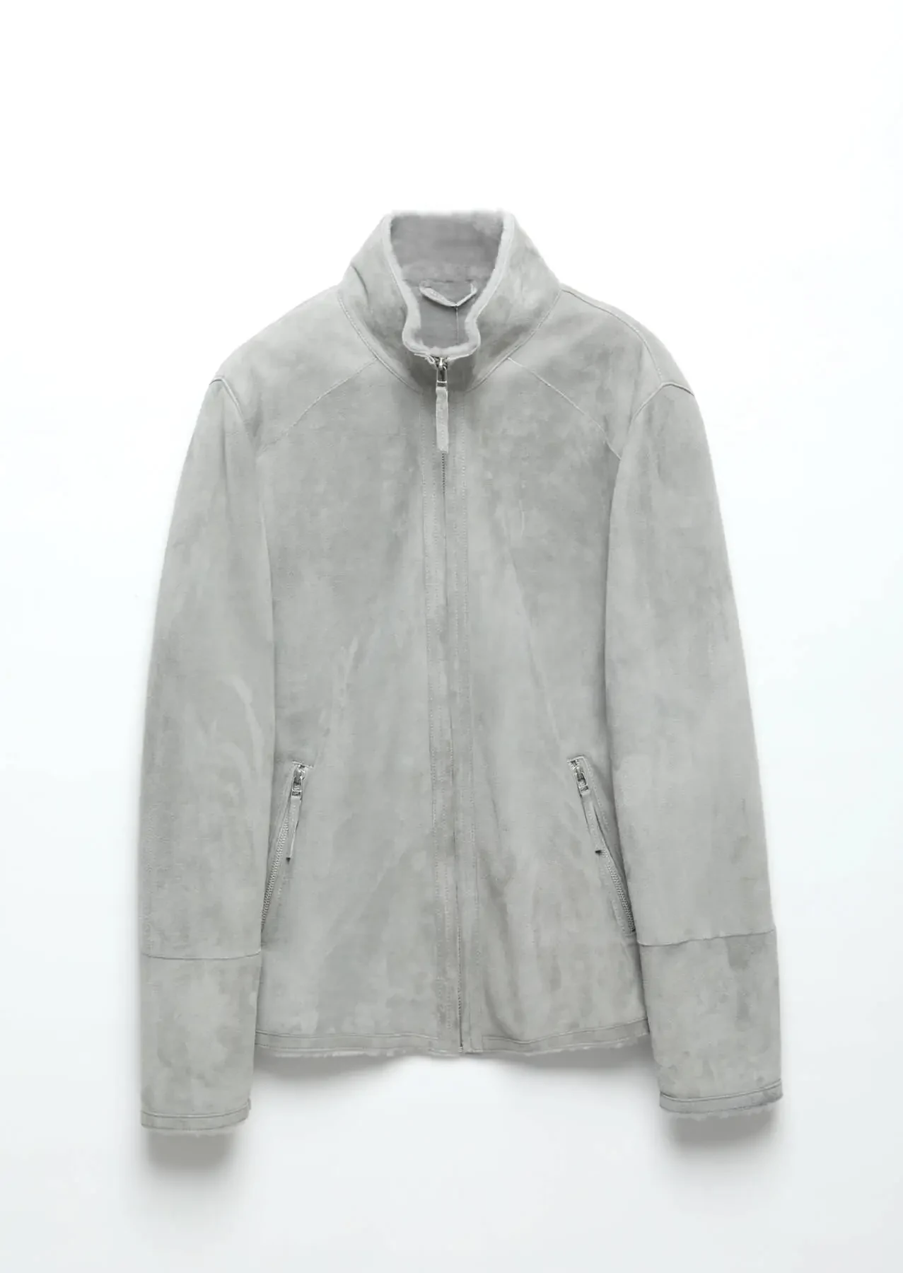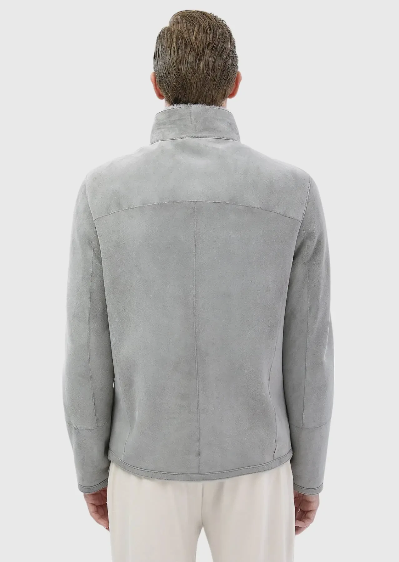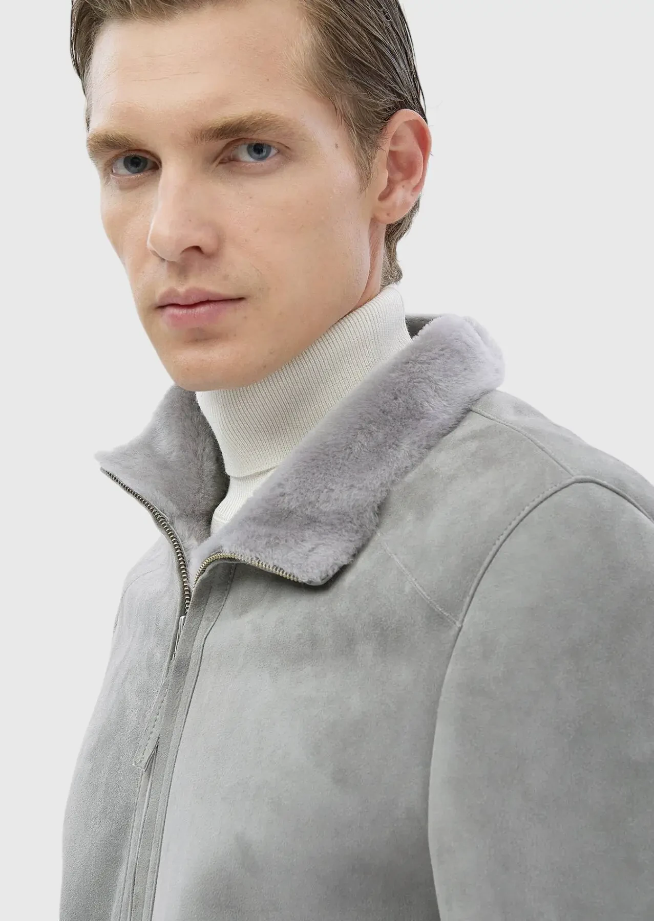 Light Grey Regular Fit Turtleneck Casual Fur Leather Coat