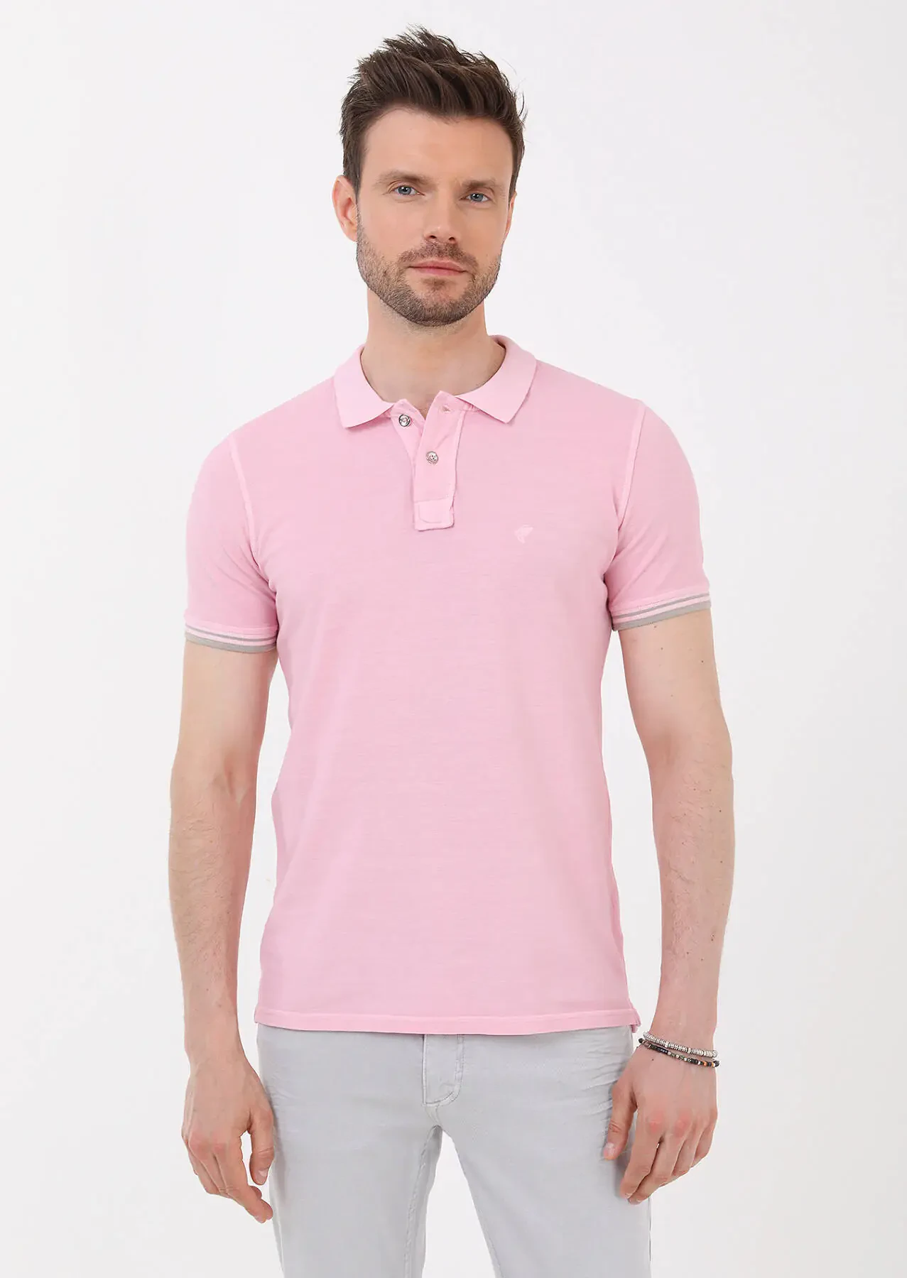 Light Pink Plain Polo Neck 100% Cotton T-Shirt